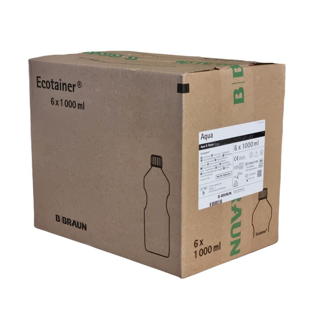 6 x B.Braun Aqua Ecotainer Wasser, steriles Wasser, Spüllösung, Sterilwasser zur Inhalation/Atemgasbefeuchtung Sauerstofftherapie, 6 Flaschen á 1000ml (Aeropart Nachfolgeartikel)