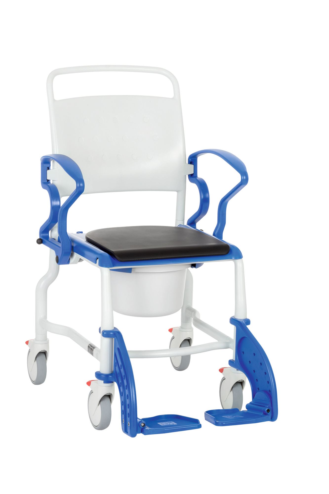 6 x Rebotec Bonn Toilettenstuhl, Jubiläumsmodell grau/blau, HMV, Kunststoff, Limited Edition, 4 Feststellbremsen, komplett mit Eimer, Armlehnen und Fußstützen, 5”-Räder, bis 130kg