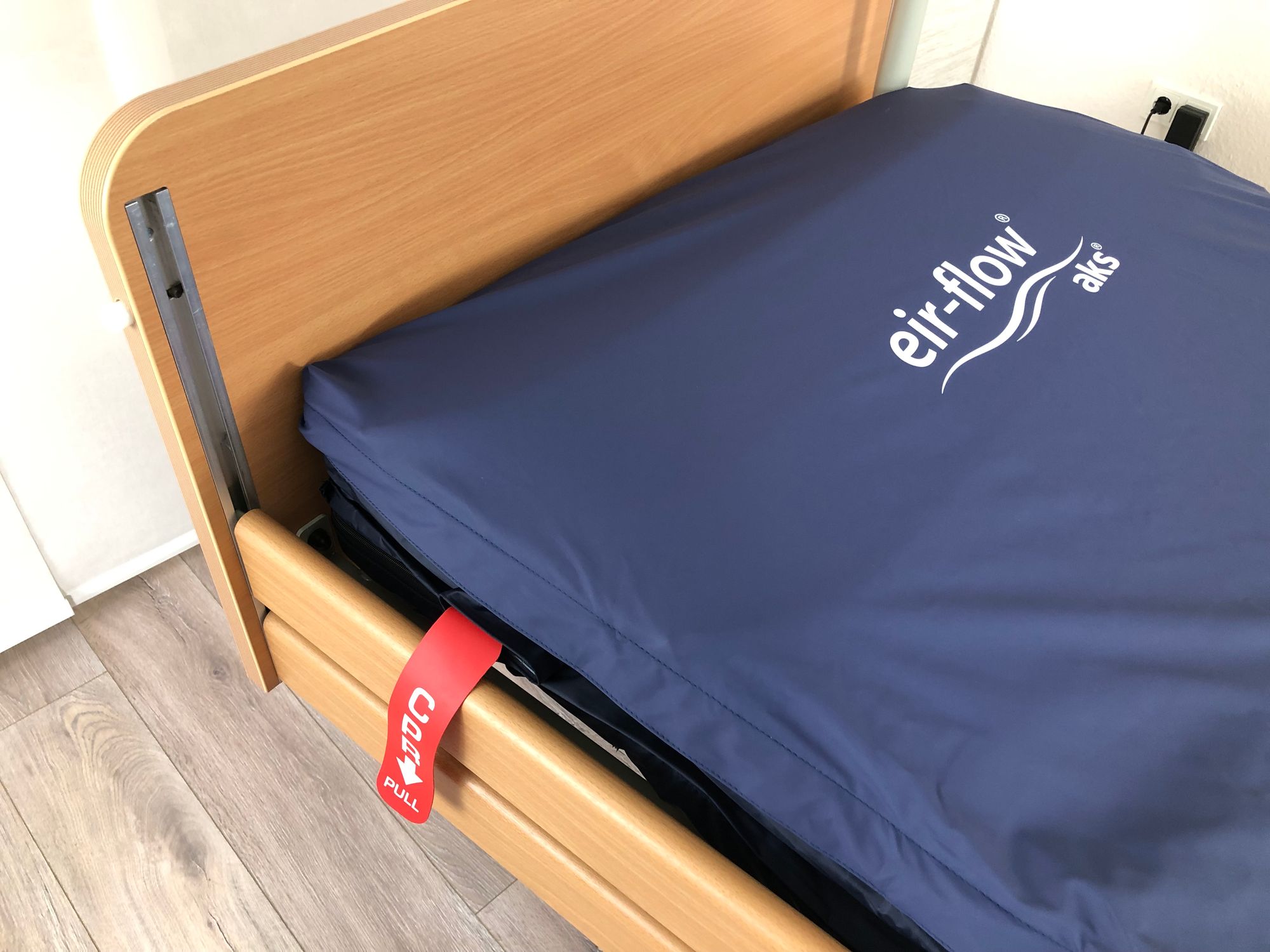 aks eir-flow® IV Großzelliges Antidekubitus-Wechseldrucksystem mit Statikfunktion Für Personen mit bis zu 140 kg Körpergewicht bis einschließlich Dekubitusgrad IV nach EPUAP eir-flow® IV eir-flow® IV Matratzenersatzsystem mit herausnehmbarer Schaumstoffunterlage (4 cm) Statikfunktion optischer und akustischer Alarm bei Druckverlust (z.B. Leckage) alternierendes Zweikammersystem zur intermittierenden Druckentlastung 17 hochwertige Luftzellen aus TPU/Nylon Zellenhöhe 13 cm Matratzenbezug aus PES/PU, flüssigkeitsundurchlässig, mit umlaufendem Reißverschluss Schnellentlüftung der Matratze durch CPR-Lasche sichere Einrastverbindung der Schläuche am Aggregat Patientengewicht 40-140 kg Für die Dekubitusprophylaxe bis zu einem sehr hohen Dekubitusrisiko und zur Dekubitustherapie bis einschließlich Grad IV (nach EPUAP) einsetzbar.HMV-Nummer geplant