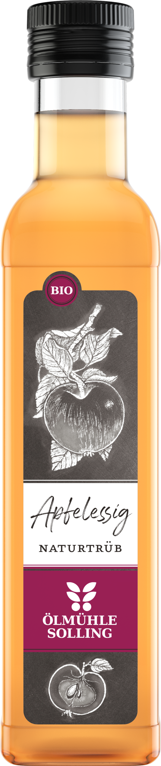 Der naturtrübe Apfelessig wird aus frisch gekeltertem Apfelsaft hergestellt und nicht gefiltert oder pasteurisiert. Für fruchtige Salate und als Erfrischungsgetränk mit Mineralwasser.