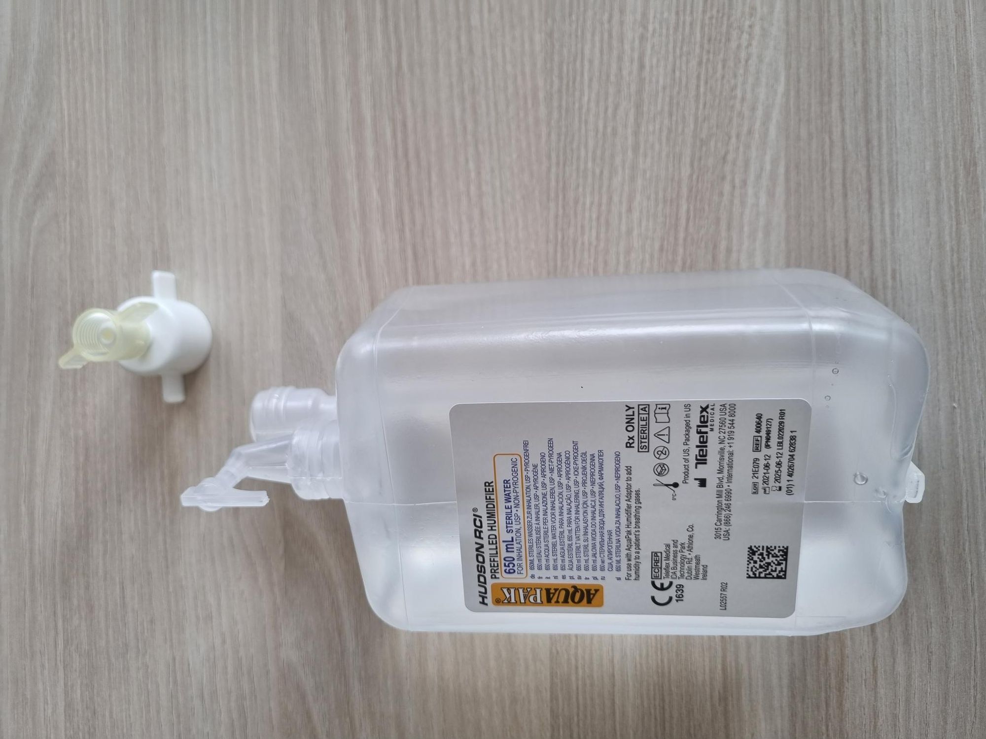 Aquapak Sterilwasser 650ml im geschlossenen System, inkl. O2-Adapter zum Anschluss an Sauerstoffgeräte, steriles Wasser zur Inhalation in der Sauerstofftherapie (unser Respiflo Nachfolgeprodukt)