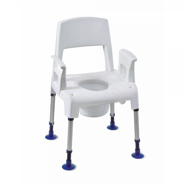 Der Pico 3 in 1 von Aquatec lässt sich sehr vielseitig gebrauchen – als Duschstuhl, Toilettenstuhl oder und als Toilettenstützgestell. absolut rostfrei durch Verwendung von Kunststoff und Aluminium auch verwendbar ohne Arm- und oder Rückenlehne strukturierte Sitzfläche für sicheren Halt Gummifüße für sicheren Stand Toilettentopf kann an vier Seiten entnommen werden einfache schnelle Montage ohne Werkzeug Maße: Sitz (-breite -tiefe) 43 cm 42 cm Sitzhöhe verstellbar 42,5 – 57,5 cm Gesamt (-breite -tiefe) 57,5 cm 52 cm Gesamthöhe 82,5 -97,5 cm Höhe bis Armlehnen 43 cm Gewicht  4,8 kg Belastbarkeit 160 kg Farbe: weiß Lieferumfang: Pico 3 in 1 2 Armlehnen, 1 Rückenlehne, 1 Toilettentopf, 1 Toilettentopfhalter