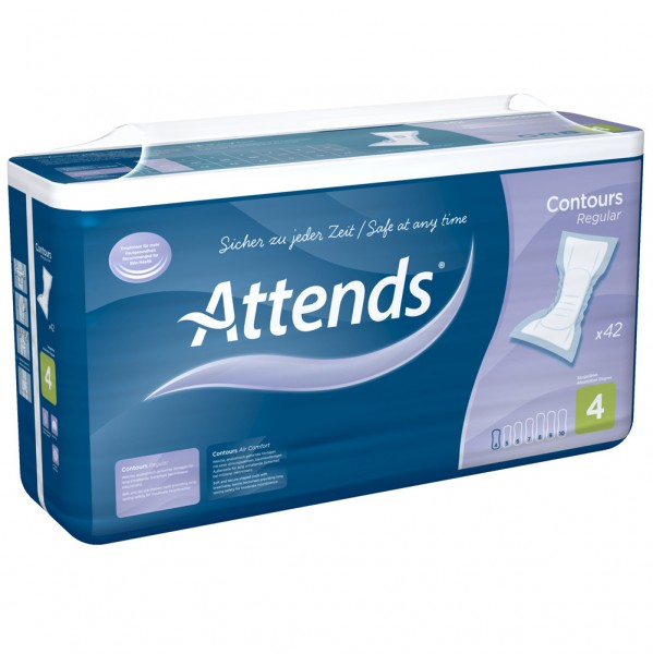 Die Attends Contours Regular 4 (1×42 Stück) ist eine anatomisch geformte Einweg-Einlage, die sich bei leichter Blasenschwäche eignet. Anschmiegsame Beinabschlüsse für sicheren seitlichen Auslaufschutz Klebepunkte zum Fixieren im Slip Odour Protection verhindert unangenehme Gerüche Hautfreundlich Latexfrei Die Fasern der Attends Quick-Dry-Technologie befinden sich direkt unter der Vliesschicht. Sie transportieren Flüssigkeit von der Haut weg ins Innere der Einlage und verlieren auch nach mehreren Urinschüben nicht an Saugfähigkeit. Die Haut bleibt dadurch angenehm trocken. Saugstärke:4 Länge:ca. 39 cm Dicke:ca. 5,5 mm Lieferumfang: 1×42 Stück Attends Contours Regular 4