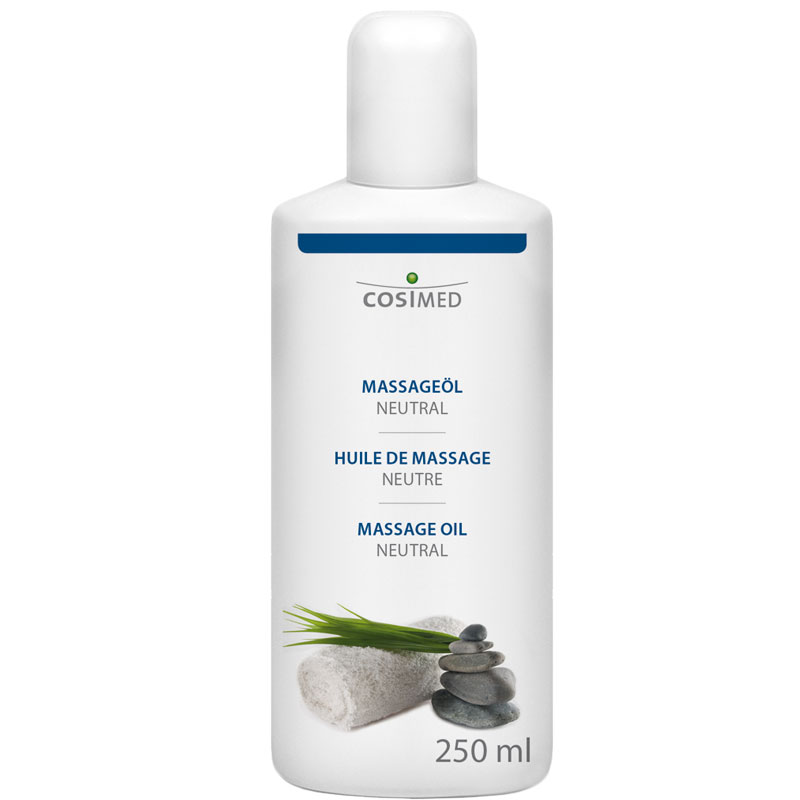 cosiMed Massageöl neutral 250ml Der Klassiker im Massagebereich. Das mineralische Massageöl besteht zu 100% aus Paraffinum.Perliquidum nach den Anforderungen der Europäischen Pharmakopöe (Ph. Eur.). Durch seine hoheReinheit ist es sehr gut verträglich. Das cosiMed Massageöl neutral ist frei von Konservierungsmitteln, frei von Farb- und Duftstoffen und daher besonders schonend.Inhalt: 250ml Flasche cosiMed GmbH – Kompetenz und Erfahrung cosiMed liefert ein umfangreiches Komplettprogramm für die Physikalische Therapie, Healthcare sowie für den Wellness-, Fitness-, Sport- und Hygienebereich. Von Beginn an stammen die Produkte fast ausschließlich aus eigener Entwicklung und Herstellung. Die hohe Qualität und das „Funktionieren“ dieser sorgt zunehmend für stetig steigende Beliebtheit und ein hohes Maß an Kundenzufriedenheit. Besonders Wert legt cosiMed auf die Verwendung von regenerativen Rohstoffen, naturreinen ätherischen Ölen und ausgewählten Substanzen. Neue Präparate werden entwickelt, bestehende verbessert und die neusten wissenschaftlichen Erkenntnisse schnellstmöglich umgesetzt. Das bewährte cosiMed-Design wird im Jubiläumsjahr durch Frische und Innovation erweitert – ganz nach dem Motto: „Altes und Neues verbinden!“ Dieses Gesamtkonzept wird Ihnen die Entscheidung für diese Produktserie noch leichter machen.
