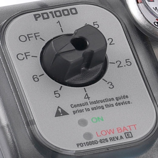 DeVilbiss PD 1000 mobiles Sauerstoffgerät Sauerstoff-Sparventil für unterwegs (PulseDose 1000) Kleine, kompakte und bruchsichere Bauform Kann mit jeder handelsüblichen Nasenkanüle benutzt werden Floweinstellung von 1 – 6 l/min in Stufen wählbar Direkt an die Sauerstoffflasche anschließbar 2 in 1: Druckminderer und Sparvenil in einem Akustischer Alarm bei Atemimpulsunterbrechung (Apnoe) Echtes Sauerstoffsparverhältnis von 3:1 Kontinuierlicher Flow von 2 l/min. einfach per Drehschalter einstellbar Energieversorgung durch 2 Mignonzellen Einfache Handhabung für durch Drehregler Sanfter 10 LPM O2 Fluss Die Vorteile des DeVilbiss PulseDose 1000 Ein Sauerstoff-Sparsystem hilft Ihnen, den begrenzten Vorrat an Sauerstoff in Gasflaschen effizient und optimal einzusetzen Da ein Sauerstoff-Sparsystem Sie nur während der Einatemphase mit Sauerstoff versorgt, lässt der bei der Ausatemphase eingesparte Sauerstoff eine längere Nutzungsdauer zu Das Sparsystem reguliert den benötigen Sauerstoff durch die Öffnungszeit eines elektronisch angesteuertem Ventils und verfügt über einen fix eingestellten Backupflow von 2 l/min, falls eine kontinuierliche Sauerstoffabgabe aus Sicherheitsgründen erforderlich ist Batteriewarnung (rot blinkende LEDs) Durch die innovative 3:1 Einsparung ergibt sich eine verlängerte Nutzungsdauer bei bestmöglicher Kosteneinsparung Das PD1000 ist eine handliche und leichte Kombination aus Sparventil und integriertem Druckminderer für den direkten Anschluss an eine Druckgasflasche Energieversorgung durch zwei Mignonzellen (AA) mit einer maximalen Nutzungsdauer von bis zu 200 Stunden Begrenzung auf 40 Sauerstoffimpulse pro Minute, um eine Überversorgung zu verhindern Wie funktioniert PulseDose? Wie wird erkannt, dass ich einatme? Beim Einatmen bewegt sich das Zwerchfell nach unten und verursacht einen Druckabfall in der Lunge. Zum Druckausgleich strömt Luft durch die Nase und den Mund hinein. Dieser Druckabfall ist beim Einatmen auch an der Nase und am Mund vorhanden. Das Drucksignal wandert durch die Nasenkanüle zu einem Sensor im PulseDose Sparsystem. Eine elektronische Schaltung öffnet dann ein elektrisches Ventil, das eine abgemessene Sauerstoffdosis abgibt. Wenn das Ventil geschlossen ist, ist der Sensor bereit, die nächste Einatmung zu erkennen. Der Puls erscheint sehr kurz. Bekomme ich wirklich genügend Sauerstoff? Ja! PulseDose gibt einen präzisen Sauerstoffstoß mit einer relativ hohen Flussrate zu Beginn eines Einatmungsvorgangs ab. Dadurch wird sichergestellt, dass der Sauerstoff tief in die Lunge gelangt, und maximaler Nutzen erzielet wird. Um den gleichen therapeutischen Nutzen zu erzielen benötigt PulseDose weniger Sauerstoff, als wenn dieser im kontinuierlichen Flow verabreicht wird. Ich höre den Puls nicht. Funktioniert PulseDose?Wenn Sie den Puls nicht hören, schauen Sie auf die grüne PulseDose Anzeige auf der Lichtskala und Sie werden sehen, dass das Gerät durch Einatmen aktiviert wird. Um auf Nummer sicher zu gehen, halten Sie das Ende der Kanüle vor Ihre Lippen, während Sie durch den Mund einatmen und fühlen Sie den Puls. PulseDose überwacht die Sauerstoffversorgung nicht. Denken Sie daran, die Füllstandsanzeige regelmäßig zu überprüfen, um sicherzustellen, dass genügend Sauerstoff vorhanden ist. Warum kann ich keine Kanülen verwenden, die länger als 10 Meter sind?Die Länge der Kanüle hat keine große Auswirkung auf die Auslösung des PulseDose, aber die Verabreichung des Sauerstoffs wird dadurch beeinflusst. Wenn die Kanüle länger als 10 Meter ist, verzögert sich der Sauerstoffpuls und wird dadurch nicht zum günstigsten Zeitpunkt der Atmung verabreicht. Ich habe immer einen Luftbefeuchter mit meinem Sauerstoff benutzt. Sollte ich einen Luftbefeuchter mit PulseDose benutzen? Nein. PulseDose kann durch das Wasser im Luftbefeuchter das Einatmen nicht erkennen. Viele Patienten stellen zudem fest, dass mit PulseDose gar keine Befeuchtung erforderlich ist. Wenn ich schneller atme, erhalte ich nicht bei jedem Atemzug einen Puls. Benötige ich nicht bei jedem Atemzug eine Dosis?Da PulseDose mit dem Patienten atmet, hat es eine Obergrenze von 40 Atemzügen pro Minute, dadurch wird verhindert, dass Sie zuviel Sauerstoff erhalten. Wenn Sie normal atmen, erhalten Sie mit jedem Atemzug eine Dosis. Erhöht sich die Atmungsrate (bis zu 40 ApM), liefert PulseDose immer noch mit jedem Atemzug eine Dosis. Dabei erhalten Sie mehr Sauerstoff pro Minute, da jeder Puls die gleiche Sauerstoffmenge mit jedem Atemzug liefert, wenn sich die Anzahl der Atemzüge erhöht hat. Wie lange halten die AA Alkali-Batterien?Die Batterien halten bei einer Nutzung von 4 Stunden pro Tag und 20 Atemzügen pro Minute mit jeweils 2 L/Min. ca. 50 Tage (200 Stunden). Bei der Einstellung 4 L/Min. halten sie ca. 26 Tage (100 Stunden) und bei 6 L/Min. 18 Tage (70 Stunden). Wie ändert man die Einstellung für den Durchfluss?Das PD1000 wird werksseitig auf eine kontinuierliche Flussrate von 2L/Min. eingestellt. Die Durchflussrate wird über die Größe der Kanülenöffnung geregelt. Um Flussraten von 3, 4, 5 oder 6L/Min. zu erzielen, muss daher vom Lieferanten ein anderer Kanülenanschluss eingesetzt werden. Die Kanülenanschlüsse sind mit verschiedenen Farben für die einzelnen Flussraten gekennzeichnet. Das Auswechseln des Kanülenanschlusses darf ausschließlich durch qualifizierte Service-Techniker erfolgen. Die Anleitung zum Auswechseln des Kanülenanschlusses finden Service-Techniker im Service-Handbuch, das ausschließlich qualifizierten Service-Technikern zur Verfügung steht. Wenn kein Atemzug festgestellt oder das Gerät nach dem Gebrauch nicht ausgeschaltet wird, wird dann Sauerstoff verschwendet?Das PD1000 pulst nur Sauerstoff, wenn ein Atemzug festgestellt wird, es wird daher kein Sauerstoff verschwendet. Wenn zwei Minuten lang kein Atemzug festgestellt wurde, schaltet das Gerät in den Modus ‘Ultra low Power’ (ultraniedriger Strom), um Batteries