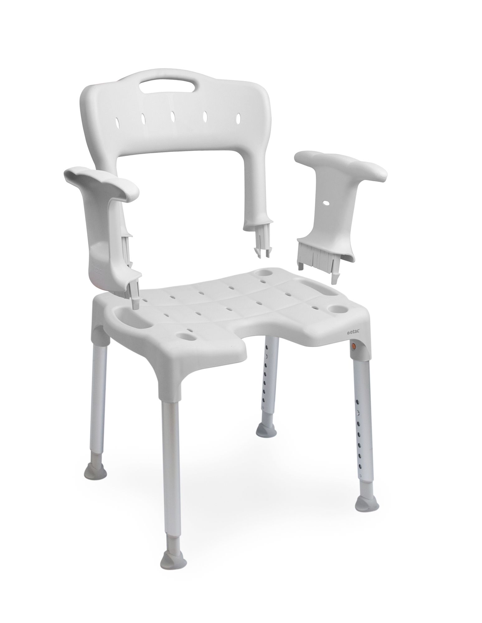 Duschhocker Etac Swift Duschhocker / Duschstuhl Gewährleistet eine leichte Montage und einfache Handhabung, pflegeleichte Materialien Die Struktur der Oberfläche sorgt für Sicherheit und Stabilität. Sitzhöhe 42-57cm Der Benutzer kann den Swift seinen wechselnden Bedürfnissen jederzeit neu anpassen. Die verstellbaren Beine des Stuhls können Böden mit starken Unebenheiten sicher ausgleichen. Zudem ist dieser Stuhl mit einem Gewicht von 3,1 kg sehr leicht und kann sehr einfach transportiert werden. Die Vorteile des Duschhocker / Duschstuhl Etac Swift sicherer Stand rutschfeste Struktur geringes Eigengewicht ab 3,1 kg (Duschhocker) Eigengewicht ab 4,7 kg (Duschstuhl) Farben: Grau, weiß, eisblau und lagoon (hellgrün) leichte Montage ohne Werkzeug Sitzhöhenverstellung zwischen 420-570 mm Baukastensystem für Ihre Bedürfnisse (Lehnen und Rücken können aufgesteckt und abgenommen werden) Maximale Belastbarkeit bis 160 kg Instandhaltung Reinigen Sie das Produkt mit einem lösungsmittelfreien Reinigungsmittel (ph-Wert 5-9) oder mit einer 70%-igen alkoholischen Desinfektionslösung. Das Produkt hält einer 3-minütigen Reinigung bei 85° C stand.