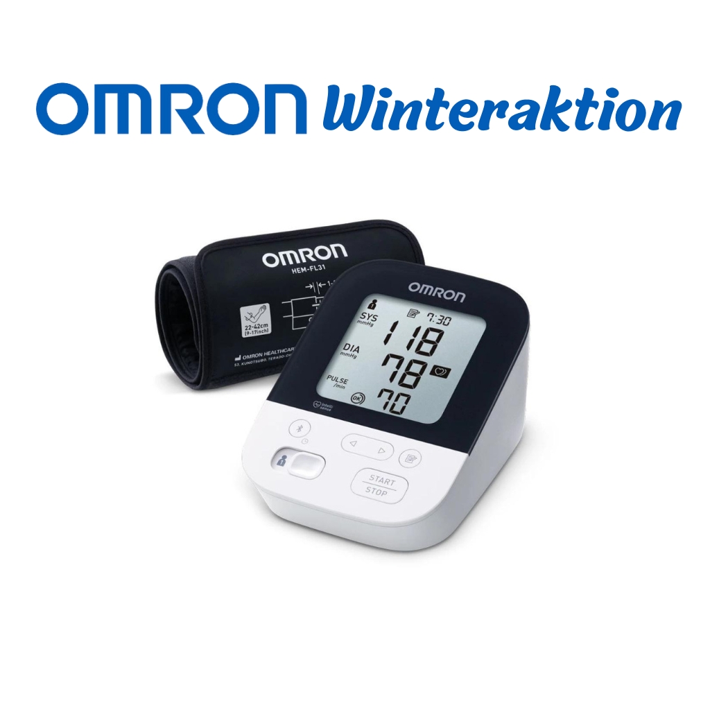 Omron Blutdruckmessgerät M400 Dieses Blutdruckmessgerät ermöglicht eine schnelle und genaue Blutdruckmessung. Die Ergebnisse übermittelt das Gerät per Bluetooth automatisch Ihren Smartphone zu. Das Blutdruckmessgerät M400 ist bereits kein Anfängermodell mehr, es misst Ihren Blutdruck professionell und sehr zuverlässig. Mit dem M400 haben Sie immer Ihre Werte bei sich, denn es verbindet sich über Bluetooth mit Ihrem Smartphone. Erkennen Sie frühzeitig Veränderungen Ihrer Blutdruckwerte und agieren Sie rechtzeitig. Die Vorteile des Blutdruckmessgerätes Omron M400: Kompatibel: Das Blutdruckmessgerät Omron M400 ist kompatibel mit der Omron connect App. Somit haben Sie Ihre Werte immer im Blick. Bluetooth: Übermitteln Sie Ihre Messergebnisse nun per Bluetooth automatisch zu Ihrem Smartphone. Erkennung unregelmäßiger Herzschläge: Omron M400 erkennt unregelmäßige Herzschläge und informiert Sie darüber. So können Sie rechtzeitig agieren und gegebenenfalls einen Arzt aufsuchen. Intelli-Wrap-Manschette: Die besondere Manschette ermöglicht eine 360° Genauigkeit, sodass in jeder Position um den Oberarm genaue Messergebnisse erfasst werden. Klinisch validiert: Entspricht dem Standard der Europäischen Gesellschaft für Hypertonie. Intelligente Technologie: Sie verhindert ein übermäßiges Aufpumpen der Manschette und ermöglicht so eine komfortablere und schnellere Messung Ihres Blutdrucks. Manschetten Kontrolle: Ein Symbol zeigt Ihnen, wenn Sie die Manschette richtig angelegt haben. Anwendung: Zur Messung sollten Sie entspannt und bequem sitzen, bei angenehmer Raumtemperatur. 30 Minuten vor der Messung nicht baden, keinen Alkohol oder Kaffee trinken, nicht rauchen, keinen Sport treiben und keine Mahlzeit zu sich nehmen. Setzen Sie sich auf einen Stuhl und stellen Sie Ihre Füße flach auf den Boden auf für eine aufrechte Sitzhaltung. Arm entspannt auf einem Tisch oder auf Ihren Schoß legen. Biegen Sie Ihr Handgelenk nicht nach hinten oder nach vorne und machen Sie keine Faust. Bitte lesen Sie vor Gebrauch dieses Omron Blutdruckmessgerät aufmerksam die Bedienungsanleitung und halten Sie sich an die Anweisungen des Herstellers. Änderungen vorbehalten. Abbildungen können vom Original abweichen.