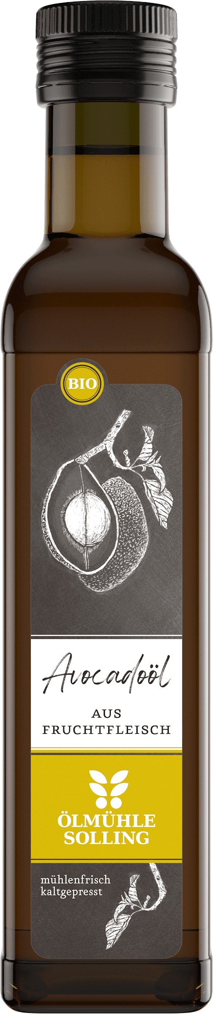 Dieses kräftig grüne Öl wird aus dem Fruchtfleisch vollreifer Avocados mühlenfrisch kaltgepresst. Das Öl ist hoch erhitzbar und zum Braten von Fisch, Fleisch und Gemüse geeignet.