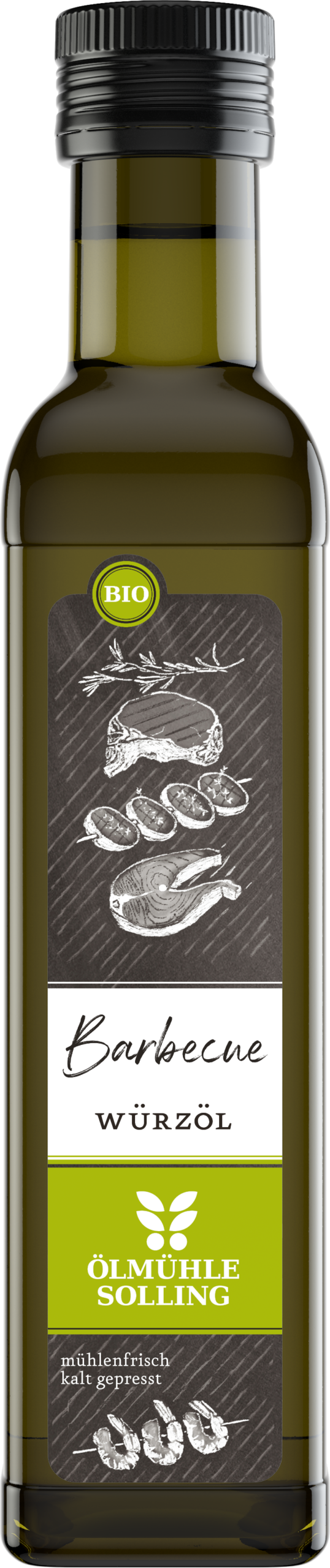 Erdnüsse werden für unser Barbecue Würzöl mühlenfrisch kaltgepresst und mit Pfeffer, Rosmarin, Kümmel, Lorbeer, Wacholder und Knoblauch verfeinert. Ideal zum Braten und Grillen.