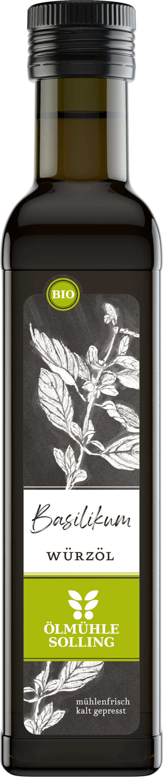 Duftiges Basilikum und mühlenfrisches, kaltgepresstes Rapsöl verbinden sich zu einem vollmundigen Geschmackserlebnis. Basilikum Würzöl gibt Salaten, Pizza und Pasta eine frische Note.