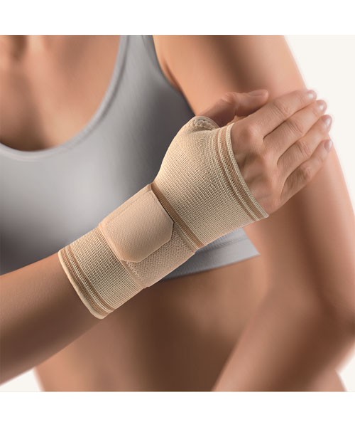 Bort Ganglion-Bandage Handgelenkbandage frei positionierbare Silikon-Pelotte volare Aluschiene anatomisch formgestrickt komprimierende Bandage mit Stabilo-Band Indikation Chronische posttraumatische oder postoperative Reizzustände im Bereich des Handgelenks bei intracapsulärem Ganglion bei dorsalem Handgelenksganglion Kontraindikation Ganglion, beugeseitig (radiopalmar) am Handgelenk Die Vorteile der Bort Ganglion-Bandage Handgelenkbandagen unterstützen geschädigte Gewebestrukturen (Gelenk, Bänder, Kapseln, Knorpel). Durch die Daumenaussparung kann die Bandage nicht verrutschen Die Kompression unterstützt dabei die Haltefunktion der Bänder und entlastet so das Gelenk. Gleichzeitig hilft die Bandage, Fehlbewegungen weitgehend zu vermeiden. Das halbelastische Stabilo ®-Band kann individuell dosiert angelegt werden, es dient gleichzeitig zur Fixierung der frei positionierbaren Silikonpelotte zur Therapie-unterstützenden Kompression eines Ganglions. Bitte beachten Sie vor Gebrauch dieses Produktes aufmerksam die Anweisungen des Herstellers. Änderungen vorbehalten. Abbildungen können vom Original abweichen. Abbildungen von: ©BORT GmbH