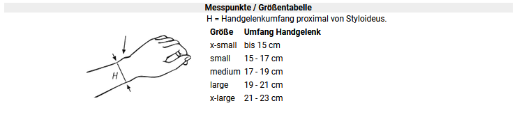 BORT Generation Handgelenkorthese blau Gepolsterte Handgelenkorthese mit volarer und dorsaler Verstärkung Schienen individuell anformbar und entnehmbar Angenehmes Tragegefühl durch atmungsaktives Material Indikationen: Karpaltunnelsyndrom postoperativ entzündlich-rheumatisch, degenerative Erkrankungen Handwurzelarthrose Karpaltunnelsyndrom (CTS) periphere Nervenlähmung (Fallhand) postoperativ posttraumatisch Präoperativ Die Vorteile der BORT Generation Handgelenkorthese blau Innovativer Verschlusszügel ermöglicht das Anlegen mit einer Hand Speziell abgepolsterte Zone im palmaren Bereich ermöglicht Verwendung in Kombination mit Gehilfen/Rollator Ansprechendes, funktionelles Design Auch nachts zu tragen Bitte lesen Sie vor Gebrauch diesen BORT Generation Handgelenkorthese blau aufmerksam die Bedienungsanleitung und halten Sie sich an die Anweisungen des Herstellers. Änderungen vorbehalten. Abbildungen können vom Original abweichen.