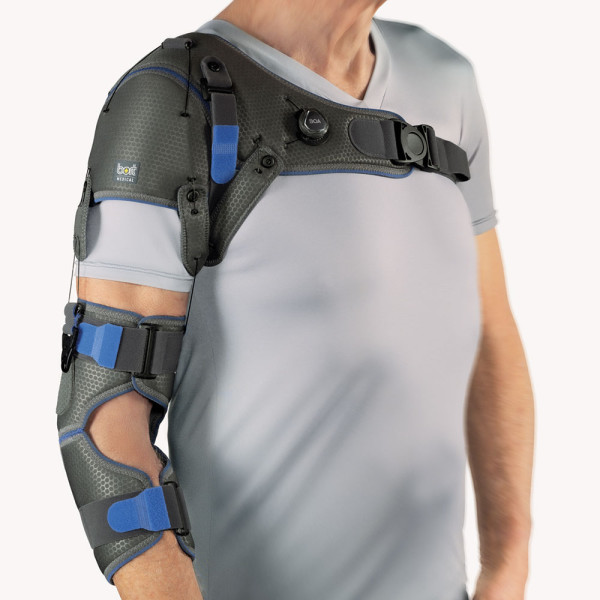 Die Bort OmoControl ist eine Schultergelenkorthese zur physiologischen Führung und Stabilisierung des Schultergelenks.Korrektur der Innenrotation und Rückführung des HumeruskopfesEntlastung der Kapsel, Sehnen, Muskeln und NervenErmöglicht freie Pendelbewegung des ArmesDas MED-PLUS:Komfortable Materialien für maximalen TragekomfortKonstruktion erlaubt ein einhändiges AnlegenEinfache Handhabung durch innovatives BOA® Fit SystemFarbe:grauIndikationen:Leichte bis mittlere Instabilität des SchultergelenksKonservativ bei habitueller SchulterluxationEntzündlichDegenerativMaterialzusammensetzung:64% Polyamid (PA)35% Polyester (PES)1% Elasthan (EL)Reinigungshinweise:Schonwaschgang 30° C, Klettverschluss schließen, ohne WeichspülerNicht bleichen, nicht im Wäschetrockner trocknen, nicht bügeln, nicht chemisch reinigenGröße:Die Orthese besteht aus einer Armmanschette (Modul A) und einer Schultermanschette (Modul B)Modul A: Unteramumfang (5 cm unter Ellenbogengelenk)Modul B: Brustumfang (unter Achselhöhle)Modul A: UnterarmunfangModul B: BrustumfangGröße20 – 25 cm75 – 90 cm125 – 25 cm90 – 105 cm220 – 25 cm105 – 125 cm325 – 30 cm75 – 90 cm425 – 30 cm90 – 105 cm525 – 30 cm105 – 125 cm630 – 35 cm75 – 90 cm730 – 35 cm90 – 105 cm830 – 35 cm105 – 125 cm9rechts oder linksLieferumfang:1 Stück BORT OmoControl Schultergelenkorthese in gewählter Größe und Seite