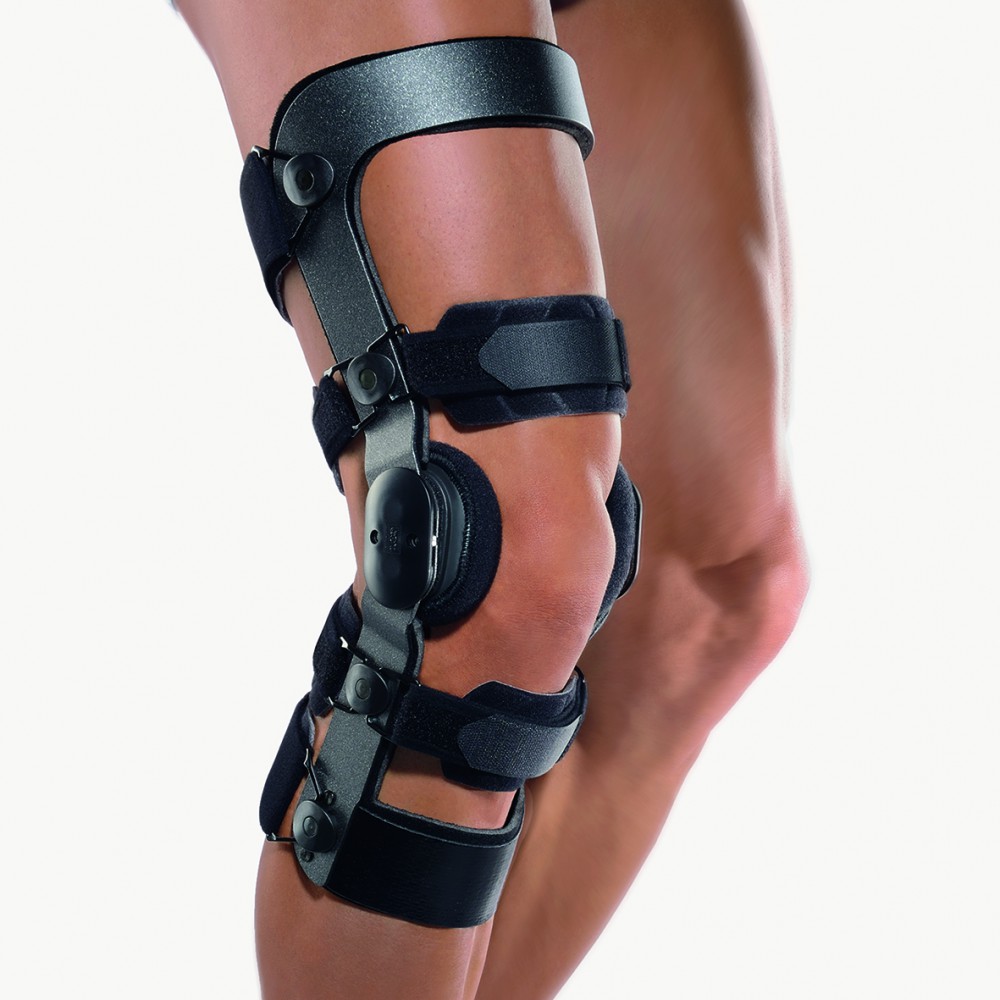 Produkt-Informationen ProduktbeschreibungOptimale Stabilisierung durch 4-Punkt-Prinzip. Hohe Rahmenfestigkeit bei dennoch geringem Gewicht durch Einsatz modernster Werkstoffe. Sehr gute Anformbarkeit des Orthesenrahmens.Polyzentrisches Zahnsegmentgelenk.Keile zur Begrenzung der Streckung in 0°, 10°, 20°, 30° und 40°.Keile zur Begrenzung derFlexion in 0° (180°), 45°, 60°, 75° und 90°.Nach Aufbereitung durch den Hersteller wiedereinsatzfähig.Ersatzpolster unter Art. Nr. 990 400, Ersatzfixiergurte unter Art. Nr. 990 410 und Anschläge unterArt. Nr. 990 390 erhältlich.IndikationenKonservative Versorgung aller isolierten und kombinierten Instabilitäten des Bandapparates. Postoperativ nach:- Ruptur des vorderen Kreuzbandes (ACL)- Ruptur des hinteren Kreuzbandes (PCL)- Verletzungen des Innen- und Außenbandapparates.Farbeanthrazit Messpunkte / Größentabelle Kniebreite: 8,5 – 9,5 cm = small 9,5 – 10,5 cm = medium 10,5 – 11,5 cm = large 11,5 – 12,5 cm = x-large rechts oder links angeben.
