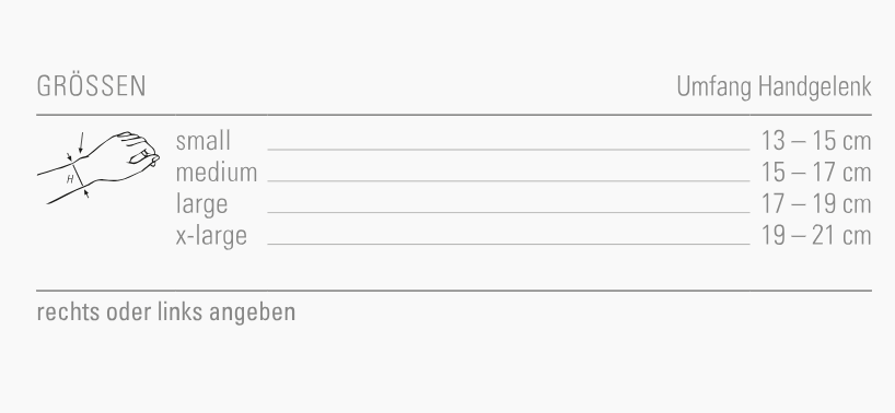 Bort Select ManuZip Volar Handgelenkbandage mit Reißverschluss antibakterielle Ausrüstung Alu-Schiene Stabilo-Band verlängerter Reißverschluss Silikonpelotte extra weicher Abschlussrand Indikation Arthrose der Handwurzel Distorsion Luxation funktionell bedingte Ruhigstellung Reizzustände Arthrose Nach Gipsverband Arthralgie Fallhand Kontraindikation Lymphabflusstörungen auch unklare Weichteilschwellungen körperfern des angelegten Hilfsmittels Empfindungs- und Durchblutungsstörungen der Arme Erkrankungen der Haut im versorgten Körperabschnitt Die Vorteile der Bort Select ManuZip Volar Handgelenk-Bandage mit Reißverschluss Die BORT ManuZip® volar Handgelenkbandage unterstützt die geschädigten Gewebestrukturen. Gleichzeitig hilft die Bandage Fehlbewegungen weitgehend zu vermeiden. Durch die Aussparung des Daumens kann die Stütze nicht verrutschen. Eine anpassbare volare Schiene und das Stabilo®-Band, welches individuell dosiert angelegt werden kann, bieten eine sichere Stabilisierung des Handgelenks Die Kompression der Bandage unterstützt die Haltefunktion der Bänder und entlastet so das Gelenk. In Bewegung bewirken das komprimierende Gestrick und die Silikonpelotte einen Massageeffekt, der Schwellungsneigungen reduziert, bestehende Schwellungen rückbilden hilft und somit den Heilungsprozess beschleunigt. Alle Produkte aus der BORT Bandagenserie verfügen über eine antibakterielle Ausrüstung mit Timbrelle die höchste hygienische Ansprüche erfüllt. Bitte lesen Sie vor Gebrauch diesen Bort Select ManuZip Volar Handgelenk-Bandage mit Reißverschluss aufmerksam die Bedienungsanleitung und halten Sie sich an die Anweisungen des Herstellers. Änderungen vorbehalten. Abbildungen können vom Original abweichen. Abbildungen von: ©BORT GmbH