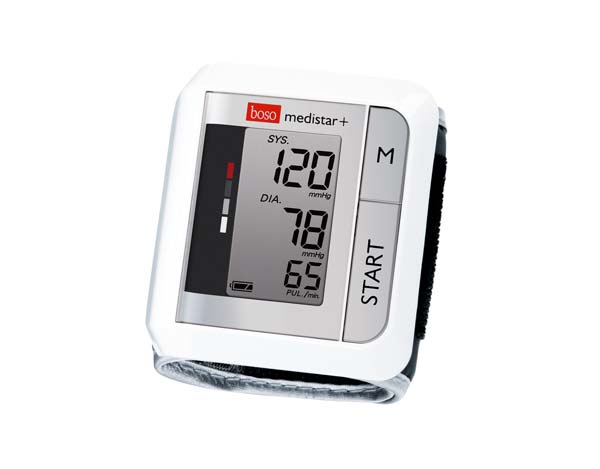 Boso Medistar + Das Handgelenk-Blutdruckmessgerät Für alle, die mehr Informationen zu ihrem Blutdruckstatus wünschen, ist dieses Modell somit die erste Wahl. Hierzu steht ein Speicher für 90 Messwerte zur Verfügung, der auch Basis für die Auswertung des Blutdrucks ist. Alles plus großer Anzeige und elegantem Gerätdesign. Vollautomatisches Blutdruckmessgerät für die Messung am Handgelenk Arrhythmie-Erkennung – zeigt Herzrhythmusstörungen an Blutdruck-Bewertungsskala nach WHO Großes Display mit 3-Werte-Anzeige Speicher für 90 Messwerte für Langzeitprofil Manschette für Handgelenkumfang 13,5 – 21,5 cm Mit Etui, Batterien und Blutdruckpass Die Vorteile des Boso Medistar + Für alle, die mehr Informationen zu ihrem Blutdruckstatus wünschen, ist dieses Handgelenkgerät die erste Wahl. Hierzu steht ein Speicher für 90 Messwerte zur Verfügung, der auch Basis für die Auswertung des Blutdrucks ist. Top Gerät mit großer Anzeige und elegantem Gerätdesign. Bitte lesen Sie vor Gebrauch dieses Boso Handgelenkmessgerät Medistar + aufmerksam die Bedienungsanleitung und halten Sie sich an die Anweisungen des Herstellers. Änderungen vorbehalten. Abbildungen können vom Original abweichen.