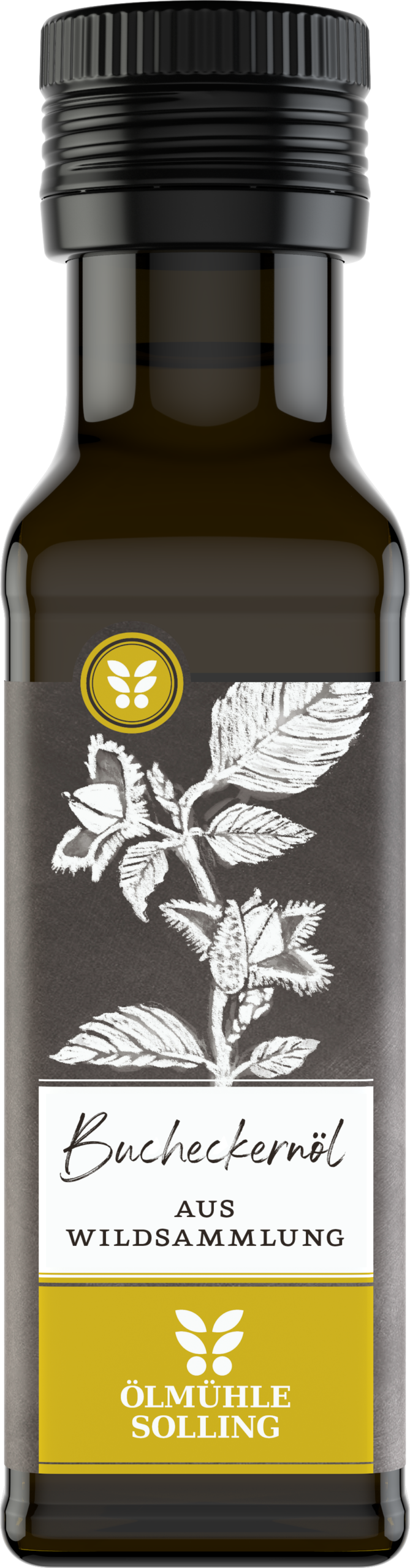 Unser Bucheckernöl ist eine wohlschmeckende Rarität, die aus Bucheckern aus Wildsammlung mühlenfrisch kaltgepresst wird. Hervorragend passt es zu Salaten, Wild- und Pilzgerichten.