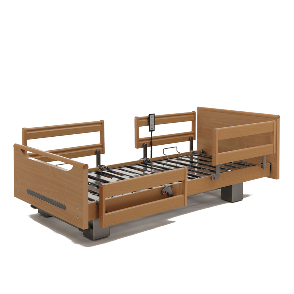 Burmeier Pflegebett Westfalia-Care das komfortable Kranken- und Seniorenbett für zu Hause GETEILTE SEITENGITTER Komfort-Pflegebett Holzumbauten erhältlich als ‘Standard ohne Rundstollen, als ‘Comodo mit seitlichen Rundstollen oder als ‘Primero mit Griffleiste Liegefläche 90 x 200 cm Aufrichter im Lieferumfang NICHT enthalten (optional erhältlich) 225 kg sichere Arbeitslast Die Vorteile des Burmeier Pflegebett Westfalia-Care geeignet für schwergewichtige Personen mit leicht zu reinigenden und robusten Stahl-Lamellen Liegefläche mit auswandernder Rückenlehne Liegehöhenverstellung von ca. 26-89 cm Unterschenkellehne manuell einstellbar Integrierte Bett- und Unterschenkellehnen-Verlängerung wartungsarmes und langlebiges Linak-Antriebssystem innovatives und zeitloses Design Rollen durch Abdeckung verkleidet sichere Arbeitslast bis 225 kg Zentrale Rollenfeststellung in jeder Liegeflächenposition möglich auch für schwergewichtigere Personen geeignet Handschalter mit selektiver Sperr- und Autokonturfunktion Burmeier Pflegebetten Burmeier ist eines der marktführenden Unternehmen für die Herstellung und den Vertrieb von Pflegebetten und Einrichtungen für Seniorenheime. Zusammen mit der Muttergesellschaft Stiegelmeyer hat die Gruppe eine mehr als 100-jährige Erfahrung in der Produktion von Kranken- und Pflegebetten sowie Zubehör. Die Produkte von Burmeier besitzen einen weltweit geschätzten hohen Qualitäts- und Sicherheitsstandard. Produktqualität – Made in Germany Sicherheit, Qualität und Langlebigkeit der Burmeier Produkte haben absoluten Vorrang Einhaltung aller relevanten Pflegebettnormen sowie der neuen zu erwartenden Norm IEC 60601-2-52 Qualitäts-Managementsystem nach ISO 9001 und ISO 13485 Einhaltung von zusätzlichen, über die normativen Vorgaben hinaus gehende Sicherheiten und Konstruktionen nach unserer Qualitätsphilosophie ausschließlicher Einsatz von geprüften und hochwertigen Materialien Einbau von robusten und wartungsarmen Markenprodukten wie Tente-Rollen oder Linak-Antriebssystemen Sofortige Lieferbereitschaft aller Standard- und Spezial-Pflegebetten sowie Ersatzteile Umfangreiches Pflegebetten-Sortiment für jeden Bedarfsfall das richtige Pflegebett Sicherer Ersatzteilservice auf Jahre garantiert Sofortige Antworten auf Kundenanfragen durch kompetente, motivierte und langjährig beschäftigte Mitarbeiter im Innen- und Außendienst Sicherheit einer starken Firmengruppe mit 110-jähriger Tradition und Erfahrung Bewährtes, seit 4 Jahren im Markt bestens eingeführtes Linak 24 Volt-Antriebssystem, mit Sparpotential im Wartungs- und Energiebereich optimale Sicherheit für Bewohner Beste Bedingungen für Bewohner und Pflegekräfte für eine aktivierende und nachhaltige Pflege Das 24 Volt-Antriebssystem Bei diesem innovativen Antriebssystem sind alle spannungsführenden 230 Volt Komponenten außerhalb des Pflegebettes verlagert. Bewohner werden optimal geschützt und der Betreiber kann zusätzliche Kosten durch vereinfachte Wartungen einsparen. In Verbindung mit einem elektronischen Schaltnetzteil zur Spannungswandlung wir der Stromverbrauch zum herkömmlichen Antriebssystem deutlich reduziert. Pro Jahr sind Ersparnisse von bis zu 15 Euro je Bett möglich. Darüberhinaus wird die Umwelt geschont. Servicebereich Prospekt Bitte lesen Sie vor Gebrauch dieses Burmeier Pflegebett Westfalia-Care mit geteilten Seitengitter aufmerksam die Bedienungsanleitung und halten Sie sich an die Anweisungen des Herstellers. Änderungen vorbehalten. Abbildungen können vom Original abweichen.
