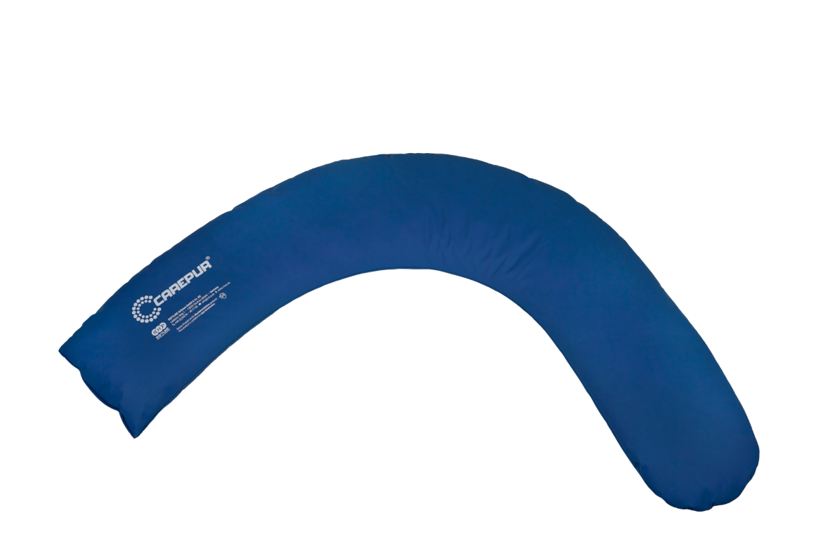 CAREPUR Halbmondkissen M blau, 180 x 31 cm Lagerungskissen zur Nestlagerung geeignet vielfache Einsatzmöglichkeiten mit PU-Bezug HMV 11.11.05.1014 Die Vorteile des CAREPUR Halbmondkissen Lagerungshilfe Das Halbmondkissen hält und stützt den Rücken des liegenden Patienten in der seitlichen Lagerung oder den Oberkörper in der Sitzposition auch in der S-Line Größe (Farbe: grün) erhältlich! Die Größe der S-Line Klassen beträgt 75% der normalen Klassengröße und ist besonders gut für Kinder und kleine Menschen geeignet Krankenkassen-Hilfsmittelnummer HMV 11.11.05.1014 Außerdem kann das Halbmondkissen zur Nestlagerung eingesetzt werden Das Halbmondkissen dient der Nestlagerung zur Verbesserung der Eigenwahrnehmung des Patienten. Schultern und Kopf werden mit nur einem Element gelagert Das CAREPUR Halbmondkissen ist ein körperlanges, schlauchförmiges Kissen in C-Form, das bei der Positionierung und Freilagerung verschiedener Körperteile Anwendung findet. Bei Anwendung in der Rückenlage des Patienten/Bewohners, wobei das Kissen direkt unter Kopf, Hals, Schultern und oberen Extremitäten platziert wird und diese Bereiche sicher stützt, fixiert und druckentlastet. Gleichzeitig liegt es beiderseits seitlich am Rumpf des Anwenders an, ist spürbar und fördert so die Eigenwahrnehmung. Bei der Anwendung des Kissens im Bereich der unteren Extremitäten – durch mittige Platzierung unter den Oberschenkeln und Knien des Patienten/Bewohners und seitlicher Wegführung der schlauchförmigen Enden in Richtung Becken und Thorax – wird eine Entlastung im Gesäß- und Kreuzbeinbereich sowie eine Unterfütterung des Kniebereiches – zur Vermeidung einer Hohllagerung – erreicht. Dabei fördern die seitlich an Becken und Rumpf anliegenden Kissenenden die Eigenwahrnehmung und bieten gleichzeitig die Möglichkeit der Weichlagerung der oberen Extremitäten. Das Kissen kann ebenfalls zur seitlichen Positionierung des Anwenders eingesetzt werden, wobei es direkt an den abzustützenden Regionen Schulter, Rücken und Becken sowie im Bereich der unteren Extremitäten zwischen den Beinen, zur Verhinderung des Aneinanderliegens der Knie bzw. zur Gewährleistung einer Abduktion in diesem Bereich, platziert wird. Halbmondkissen M in der Rückenlagerung (1) Das Halbmondkissen M positioniert Kopf und Schultern mit nur einem Kissenelement in Rückenlage. Halbmondkissen M in der Rückenlagerung (2) Das Halbmondkissen positioniert Oberschenkel und Knie, fördert die Wahrnehmung im Bereich des Beckens und ermöglicht eine leicht erhöhte physiologische Armlagerung. Allgemeine Indikation CAREPUR-Lagerungskissen sind Medizinprodukte der Klasse I. Sie sind als statische Positionierungshilfen für Leib, Rumpf und Extremitäten sowohl für die Dekubitusprophylaxe als auch für die Dekubitustherapieunterstützung geeignet. Sie wirken nach dem Weichlagerungs-, Umlagerungs-bzw. Freilagerungsprinzip und unterstützen je nach Kissentyp bei der Lagerung und Positionierung besonders gefährdeter Körperteile bzw. Körperregionen. Die Produkte können eine manuelle Lagerung des Patienten nicht ersetzen, aber gegebenenfalls das Lagerungsintervall verlängern bzw. die korrekte Lagerung und Positionierung erst ermöglichen. Spezielle Indikation | Merkmale Das CAREPUR Halbmondkissen dient der gleichzeitigen, erhöhten Lagerung von Kopf, Rumpf, Schultern und der oberen Extremitäten. Es umschließt den Körper, stützt ihn von allen Seiten und erzeugt somit ein angenehmes Liegegefühl. Das Lagerungskissen fördert die Eigenwahrnehmung des Patienten und passt sich ideal den vorhandenen Körperkonturen an. Bei der Anwendung des Kissens im Bereich der unteren Extremitäten kann eine Entlastung im Gesäß- und Kreuzbeinbereich durch eine flächige Druckverteilung auf die Oberschenkelareale sowie eine Unterfütterung des Kniebereiches– zur Vermeidung einer Hyperextension bzw. Hohllagerung–erreicht werden. Es kann ebenfalls bei der Durchführung der 30°-und der 135°-Seitenlagerung Anwendung finden. Anwendungsbereich | Funktion Die CAREPUR-Lagerungskissen sind für den Einsatz in Krankenhäusern, Alten-und Pflegeheimen sowie im häuslichen Bereich geeignet und dienen der Verbesserung der Positionierung im Standardbett, Pflegebett bzw. im Rollstuhl und zur Unterstützung bei der Durchführung spezifischer Lagerungsformen zur Prophylaxe und Therapie von Dekubitalgeschwüren. Durch das leichte Einsinken des Patienten in die Kissenstruktur kann sich der Auflagedruck auf eine wesentlich größere Fläche verteilen, wodurch eine scherkraftreduzierende Wirkung und die gleichzeitige Verbesserung der Blutzirkulation der angrenzenden Gewebeareale erreicht werden. Die Kissen sind geeignet zur Verwendung in Betten mit ebener oder verstellbarer Liegefläche und für den Einsatz in trockenen Räumen. Hinweis: Für den Betreiber/Anwender von Medizinprodukten ist die Medizinprodukte-Betreiber-Verordnung (MPBetreibV) verbindlich. Der Anwender muss die entsprechende Sachkenntnis besitzen, um die Eignung des Produktes zu prüfen und das bestehende Dekubitusrisiko sowie vorhandene Dekubitalulzerationen beurteilen zu können. Anwendungsrisiken | Kontraindikation Erfolgt die Verwendung der CAREPUR-Lagerungskissen in Betten mit Seitengittern, ist ein Einklemmen der Kissen in die Seitengitter zu ver-hindern, um einen eventuellen Funktionsverlust der Seitengitter und somit eine Patientengefährdung zu vermeiden. Bei stark transpirierenden Personen kann es bei der Anwendung zu einer partiellen Mazeration des angrenzenden Gewebes kommen. In diesem Fall empfehlen wir die zusätzliche Verwendung des Ersatzbezuges Lenzing FR®. Dieser neuartige Bezug mit integriertem Flammschutz vereint den Inkontinenzschutz mit einer hautfreundlichen, textilen Oberfläche. Der Einsatz der CareWave-Lagerungskissenersetzt nicht die regelmäßigen Positionierungswechsel. Material | Pflege und Reinigung Die Lagerungskissen bestehen zu 100 % aus Polystyrolkugeln mit kleiner