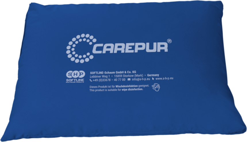 CAREPUR Universalkissen L blau, 70 x 50 cm Lagerungskissen hilft gegen Dekubitus und ist vielseitig einsetzbar vielfache Einsatzmöglichkeiten Lagerungskissen ist ein anerkanntes Hilfsmittel gegen Dekubitus mit antibakteriellem PU-Bezug Bezug: wasserdicht, atmungsaktiv, abwaschbar, wischdesinfektionsfest 70 x 50 cm (NEG 0750) – XXL Die Vorteile des CAREPUR Universalkissen Dieses Universalkissen passt sich perfekt an die jeweiligen Körperregionen an CAREPUR Lagerungskissen Man kann es beispielsweise als Waden-, Kopf- oder Armlagerungskissen bei Hemiplegiekern verwenden Krankenkassen-Hilfsmittelnummer HMV 11.11.05.0011 Das CareWave(CAREPUR) Universalkissen bietet vielseitige Einsatzmöglichkeiten, beispielsweise als Bein-, Kopf- oder Armlagerungskissen für hemiplegische Patienten, da es sich perfekt an die jeweilige anatomische Körperkontur anpasst, diese gleichzeitig fixiert und positioniert. Das Kissen wird direkt an der abzustützenden Körperpartie positioniert und kann mittels Zupfen konturgenau in seine endgültige Position gebracht werden, um positive Auswirkungen auf die Körperwahrnehmung zu erreichen. Es ist – bei hoher Stützwirkung – weich und komfortabel und entlastet dekubitusgefährdete Körperstellen sicher. Universalkissen L in der 135° Lagerung Das Universalkissen stützt den Oberkörper in der 135°-Lagerung sicher ab. 30° Lagerung mit dem Universalkissen L Das Universalkissen stützt den Oberkörper in der 30°-Lagerung sicher ab. Das Universalkissen zwischen den Knien verhindert das direkte Aneinanderliegen und bewirkt eine physiologische Beinstellung. Mit dem Universalkissen L wird ein Aneinanderliegen der Knieinnenseiten sicher verhindert und eine stabile Führung und Positionierung des oben liegenden Unterschenkels erreicht. Universalkissen L in der Rücken- bzw. Beinhochlagerung Mit dem Universalkissen XXL kann auch ein Bein erhöht gelagert werden, um die dekubitusgefährdete Ferse druckentlastend freizulagern. 135°-Lagerung Universalkissen L Das Universalkissen L stützt Knie und Unterschenkel sicher. Allgemeine Indikation CAREPUR-Lagerungskissen sind Medizinprodukte der Klasse I. Sie sind als statische Positionierungshilfen für Leib, Rumpf und Extremitäten sowohl für die Dekubitusprophylaxe als auch für die Dekubitustherapieunterstützung geeignet. Sie wirken nach dem Weichlagerungs-, Umlagerungs-bzw. Freilagerungsprinzip und unterstützen je nach Kissentyp bei der Lagerung und Positionierung besonders gefährdeter Körperteile bzw. Körperregionen. Die Produkte können eine manuelle Lagerung des Patienten nicht ersetzen, aber gegebenenfalls das Lagerungsintervall verlängern bzw. die korrekte Lagerung und Positionierung erst ermöglichen. Spezielle Indikation | Merkmale Das CAREPUR Universalkissen bietet vielseitige Einsatzmöglichkeiten, beispielsweise als Bein-, Kopf-oder Armlagerungskissen für hemi-plegische Patienten, da es sich perfekt an die jeweilige anatomische Körperkontur anpasst, diese gleichzeitig fixiert und positioniert. Das Kissen wird direkt an der abzustützenden Körperpartie positioniert und kann mittels Zupfen konturgenau in seine endgültige Position gebracht werden, um positive Auswirkungen auf die Körperwahrnehmung zu erreichen. Es ist –bei hoher Stützwirkung –weich und komfortabel und entlastet dekubitusgefährdete Körperstellen sicher. Anwendungsbereich | Funktion Die CAREPUR-Lagerungskissen sind für den Einsatz in Krankenhäusern, Alten- und Pflegeheimen sowie im häuslichen Bereich geeignet und dienen der Verbesserung der Positionierung im Standardbett, Pflegebett bzw. im Rollstuhl und zur Unterstützung bei der Durchführung spezifischer Lagerungsformen zur Prophylaxe und Therapie von Dekubitalgeschwüren. Durch das leichte Einsinken des Patienten in die Kissenstruktur kann sich der Auflagedruck auf eine wesentlich größere Fläche verteilen, wodurch eine scherkraftreduzierende Wirkung und die gleichzeitige Verbesserung der Blutzirkulation der angrenzenden Gewebeareale erreicht werden. Die Kissen sind geeignet zur Verwendung in Betten mit ebener oder verstellbarer Liegefläche und für den Einsatz in trockenen Räumen. Hinweis: Für den Betreiber/Anwender von Medizinprodukten ist die Medizinprodukte-Betreiber-Verordnung (MPBetreibV) verbindlich. Der Anwender muss die entsprechende Sachkenntnis besitzen, um die Eignung des Produktes zu prüfen und das bestehende Dekubitusrisiko sowie vorhandene Dekubitalulzerationen beurteilen zu können. Anwendungsrisiken | Kontraindikation Erfolgt die Verwendung der CAREPUR-Lagerungskissen in Betten mit Seitengittern, ist ein Einklemmen der Kissen in die Seitengitter zu verhindern, um einen eventuellen Funktionsverlust der Seitengitter und somit eine Patientengefährdung zu vermeiden. Bei stark transpirierenden Personen kann es bei der Anwendung zu einer partiellen Mazeration des angrenzenden Gewebes kommen. In diesem Fall empfehlen wir die zusätzliche Verwendung des Ersatzbezuges Lenzing FR®. Dieser neuartige Bezug mit integriertem Flammschutz vereint den Inkontinenzschutz mit einer hautfreundlichen, textilen Oberfläche Zubehör: LENZING FR BEZUG (UVP 38,08 €) Der neuartige Lenzing FR® ist der textile Bezug mit integriertem Inkontinenzschutz. Der Bezug ist dauerhaft schwer entflammbar. Die Grundkomponente ist eine Cellulosefaser, die aus dem natürlich nachwachsenden Rohstoff Holz gewonnen wird. Der Bezug ist abnehmbar und waschbar bis 95 °C. Positionierungs-Ratgeber (ca. 2,5 MB) Bitte lesen Sie vor Gebrauch dieses CAREPUR Universalkissen aufmerksam die Bedienungsanleitung und halten Sie sich an die Anweisungen des Herstellers. Änderungen vorbehalten. Abbildungen können vom Original abweichen.