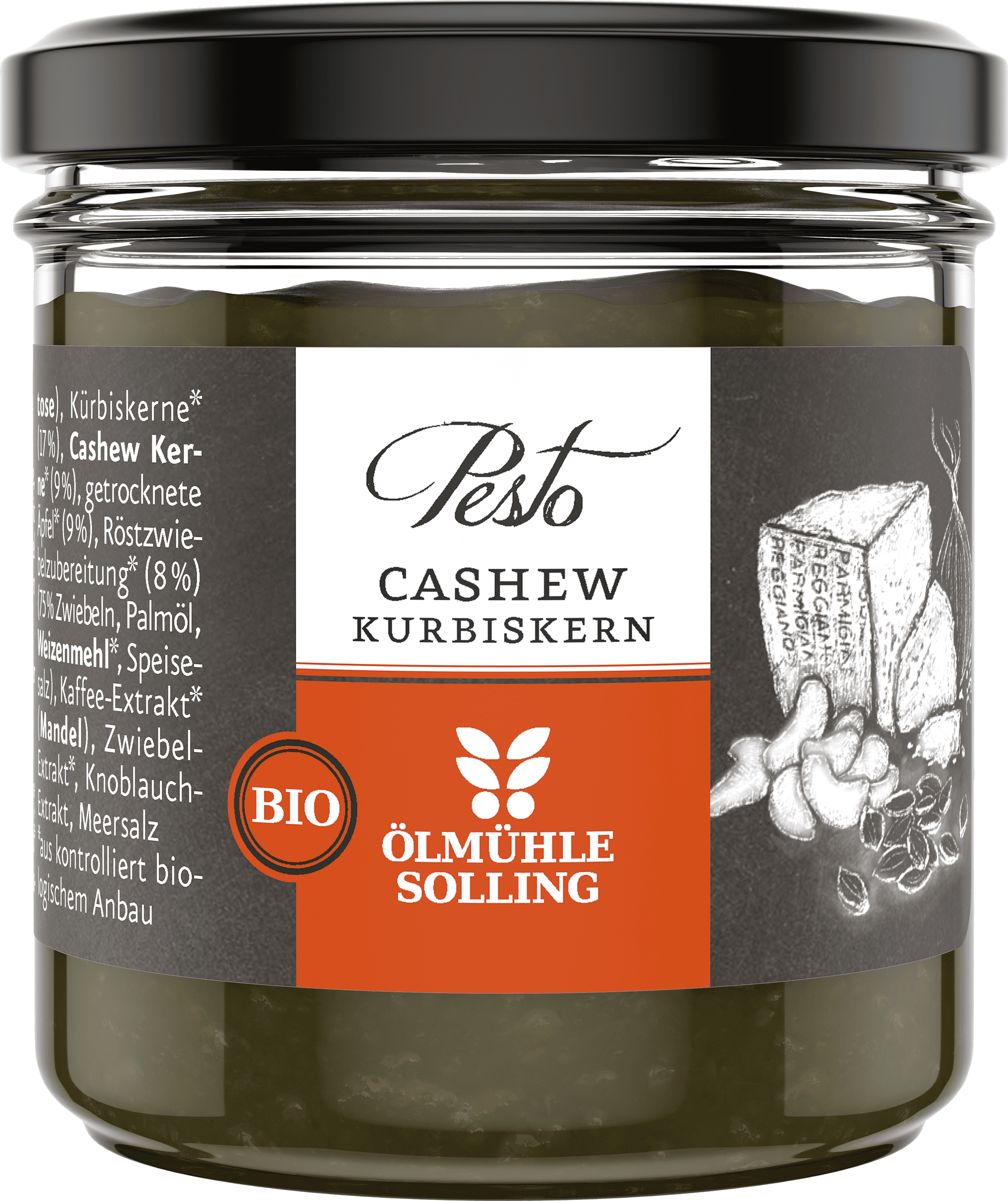 Pesto mal anders: Cashew- und Kürbiskerne, fein abgeschmeckt mit Parmesan, Röstzwiebel und einem fruchtigen Hauch Apfel. Ideal zu Kartoffelsalat.