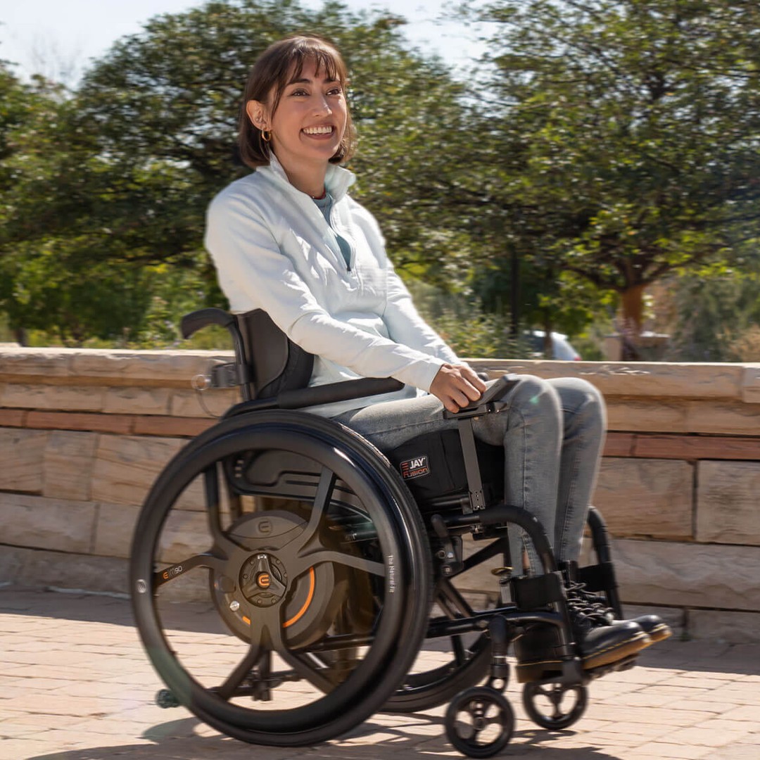EMPULSE M90 E-Antriebssystem + SOPUR Nitrum Aktivrollstuhl + JAY J3 Rücken + JAY CryoFluid Kissen + Steuerung + Kippschutz