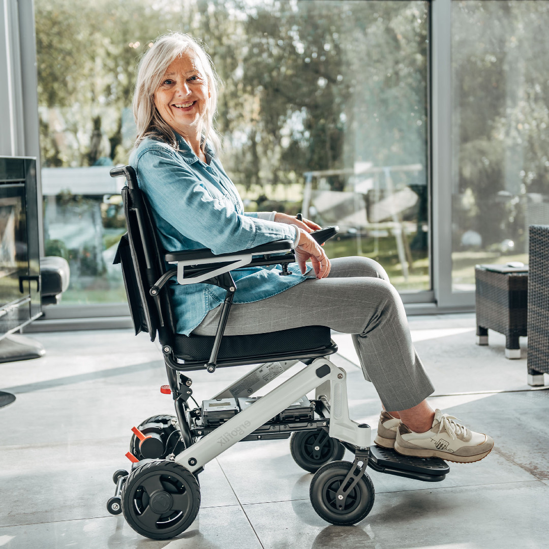 Der ergoflix® Mi2 Indoor faltbare Elektrorollstuhl (Nachfolger des Ergoflix M) Sitzmaße 40×40 cm (TxB) und bis 120 kg belastbar Design Erkennbar auf den ersten Blick: das neue Design. Der ergoflix® Mi2 punktet durch seine zeitlose, edle Optik. Komfort Du profitierst von der ergonomisch geformten Rückenlehne, der höhenverstellbaren Fußleiste sowie der vereinfachten, seitlichen Akkuentnahme Faltmechanismus Optimierter Faltmechanismus: Einfach den Clip am hinteren Teil des Rollstuhls gelöst und schon kannst Du den E-Rollstuhl zusammenfalten. Gewicht Das Modell trägt Nutzer mit einem Gewicht von bis zu 120 kg und bringt dabei nur 21,9 kg auf die Waage. Faltbar und stabil Im Handumdrehen lässt sich Dein E-Rollstuhl zusammenfalten wie ein Kinderwagen. Diese Eigenschaft ermöglicht Dir platzsparendes Verstauen im Hausflur. Erlebe Flexibilität auf Reisen und transportiere Deinen Begleiter in Bus, Bahn, PKW oder dem Flugzeug.Dank stabiler Rahmenbauweise trägt das Modell Nutzer mit einem Gewicht von bis zu 120 kg und bringt dabei selbst nur 21,9 kg auf die Waage. Kippschutzräder verleihen dem ergoflix® Mi2 zusätzliche Sicherheit. Bei Bedarf lassen sich diese wegklappen, sodass für ausreichend Fußfreiheit im hinteren Bereich gesorgt ist – praktisch für Begleitpersonen. Intuitive Steuerung Spüre die Leichtigkeit der Bedienung: Der Joystick ist intuitiv zu steuern und lässt sich stufenlos in alle Richtungen bewegen. Selbst in engsten Wohnräumen kommst Du ungehindert voran.Praktisch: Ob Links- oder Rechtshänder – das Bedienmodul wird mit nur einer Hand bedient. So kann der E-Rollstuhl auch von Menschen mit halbseitiger Einschränkung manövriert werden. Das Modul lässt sich je nach Bedarf einfach umstecken. Dank Adapter kann die Steuerung auch von Begleitpersonen übernommen werden. Vorteile Der ergoflix® Mi2 ist zeitlos und modern. Dadurch fügt er sich optisch ideal in jeden Haushalt ein. Dank hoher Wendigkeit sowie schmaler Maße ist er der perfekte Wegbegleiter im Innenbereich. Steuerung Die Steuerung des Elektrorollstuhls ist intuitiv und schnell erlernt. Selbst enge Flure oder scharfe Kurven lassen sich spielend leicht nehmen. Gewicht Der ergoflix® Mi2 hat ein Nettogewicht von 21 kg. Nutzer mit einem Gewicht von maximal 120 kg können in diesem Modell Platz nehmen und großen Fahrspaß genießen. Geschwindigkeit Dank fünf Geschwindigkeitsstufen entscheidest Du selbst, wie schnell Du unterwegs sein möchtest. Die Maximalgeschwindigkeit beträgt bei freier Fahrt 6 km/h. Rückwärts fährt dieses Modell 2 km/h. Akku Der Lithium-Ionen-Akku des ergoflix® Mi2 sorgt für die nötige Unterstützung Deines E-Rollstuhls. Erweitere bei Bedarf die Akkukapazität optional durch zwei Zusatzakkus auf 39 km. Die Akkus können einzeln entnommen und aufgeladen werden. Hilfsmittelnummer Der ergoflix® Mi2 verfügt über die Hilfsmittelnummer 18.46.06.0011 in der Indoor-Kategorie. Deine Krankenkasse kann einen Teil der Kosten übernehmen. Lasse Dich von unserem Team fachkundig beraten. Wir unterstützen Dich bei Deinem Hilfsmittelantrag.