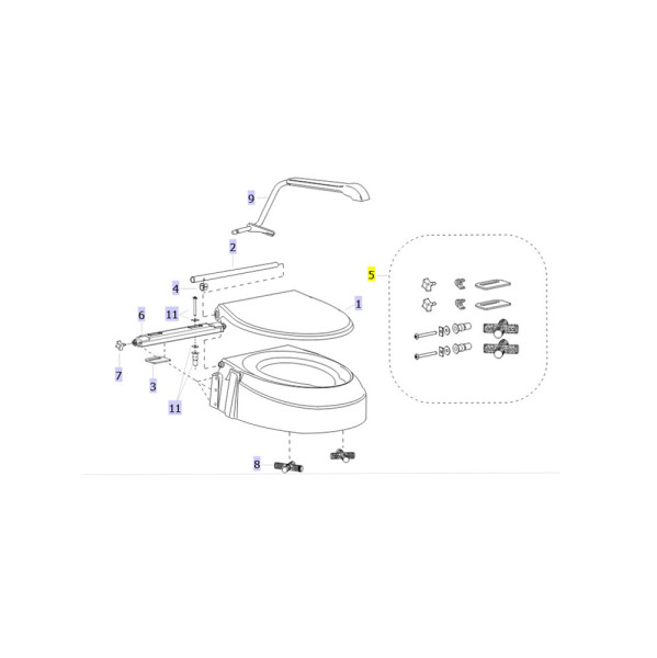 Hier finden Sie passende Ersatzteile für die Toilettensitzerhöhung Aquatec 900.Folgen Sie zur Auswahl bitte dem Bild und den Zahlen:Ersatzteil 1: DeckelErsatzteil 2: Befestigungsrohr für DeckelErsatzteil 3: KlebepadsErsatzteil 4: Clip (1 Stück)Ersatzteil 6: Querstrebe 370 mmErsatzteil 7: SterngriffschraubeErsatzteil 8: Befestigungskreuz (1 Paar)Ersatzteil 9: Armlehnen (1 Paar)Ersatzteil 10: Armlehnenauflage inkl. SchraubenErsatzteil 11: Montageset (Montage von oben) – rückwärtskompatibelErsatzteile ausverkauft (nicht mehr im Sortiment):Ersatzteil 5: MontagesetErsatzteil 5a: SchnellspannverschraubungLieferumfang1 x gewähltes Ersatzteil