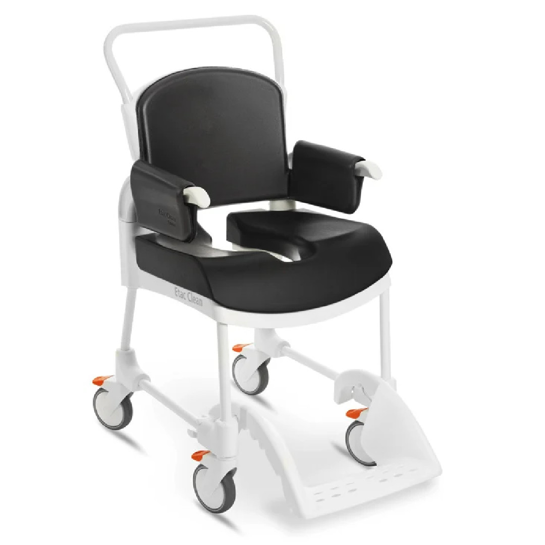 Etac Clean 5 Komfort-Set, Schiebe Dusch- und Toilettenstuhl, 4 arretierbare Räder, Polstersitz & -rücken & -armlehnen, inkl. Beckenhalter & Becken