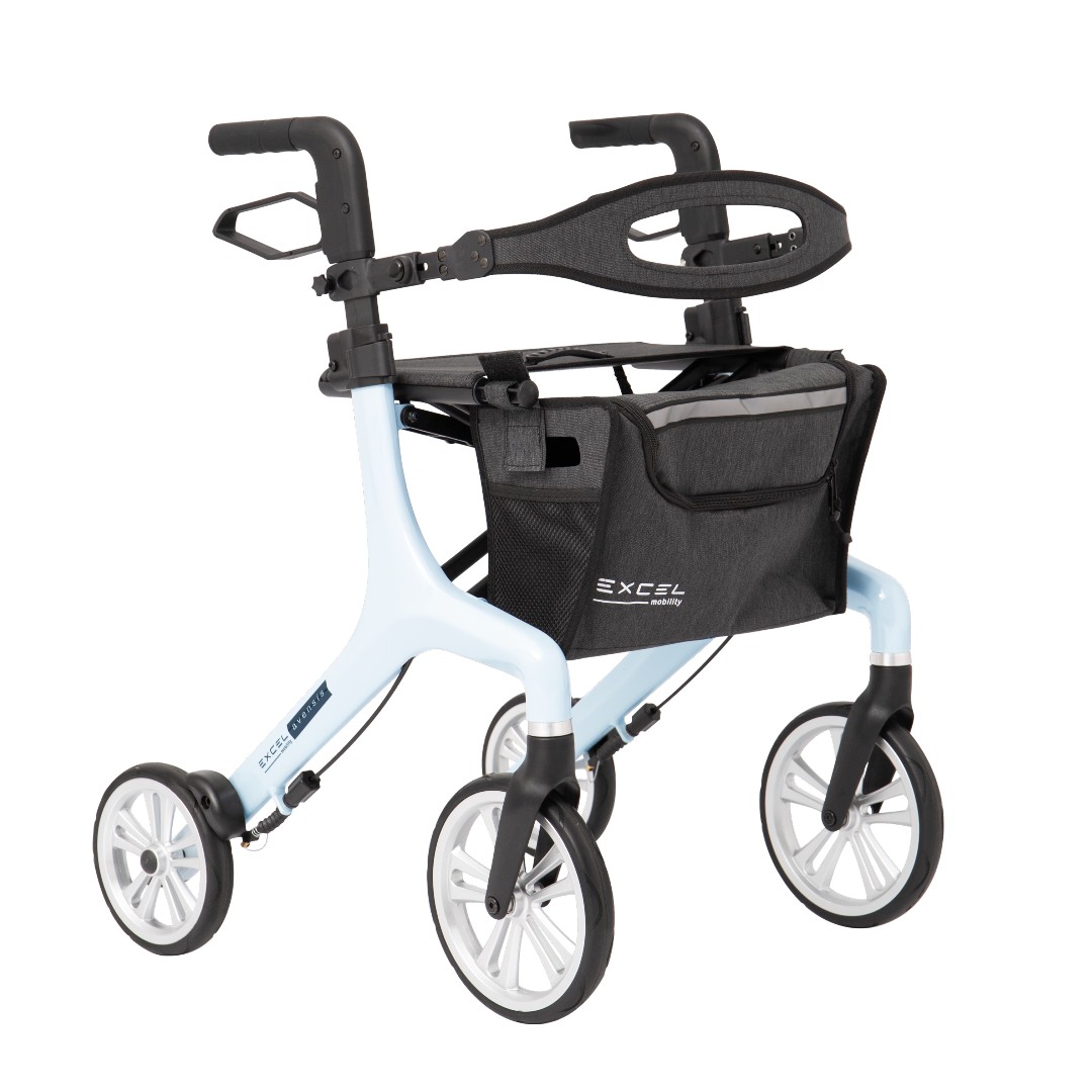 Excel Avensis Rollator, cloudblue, Aluminium Leichtgewicht, mit verstellbarem Rückengurt, nur 6.1 kg