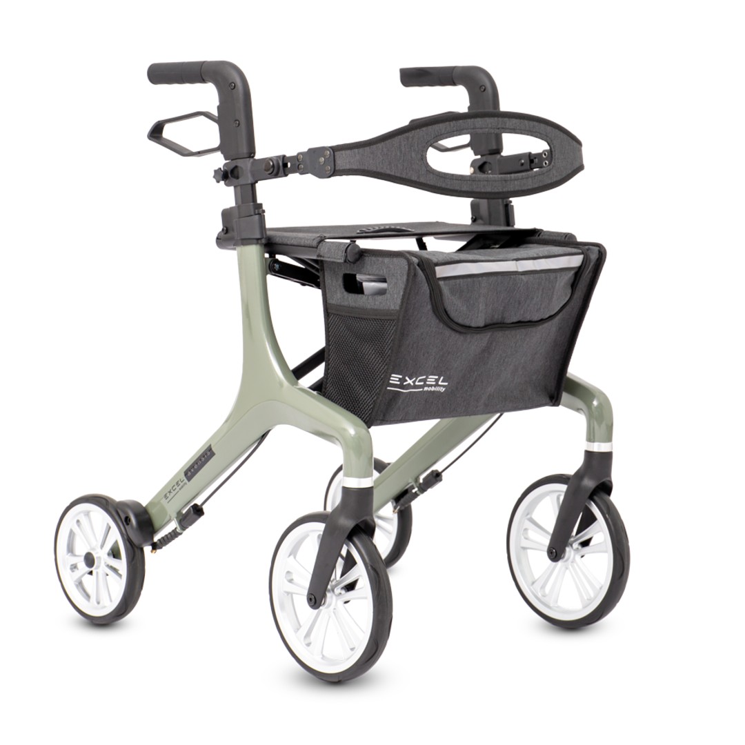 Excel Avensis Rollator, salbei-grün, Aluminium Leichtgewicht, mit verstellbarem Rückengurt, nur 6.1 kg