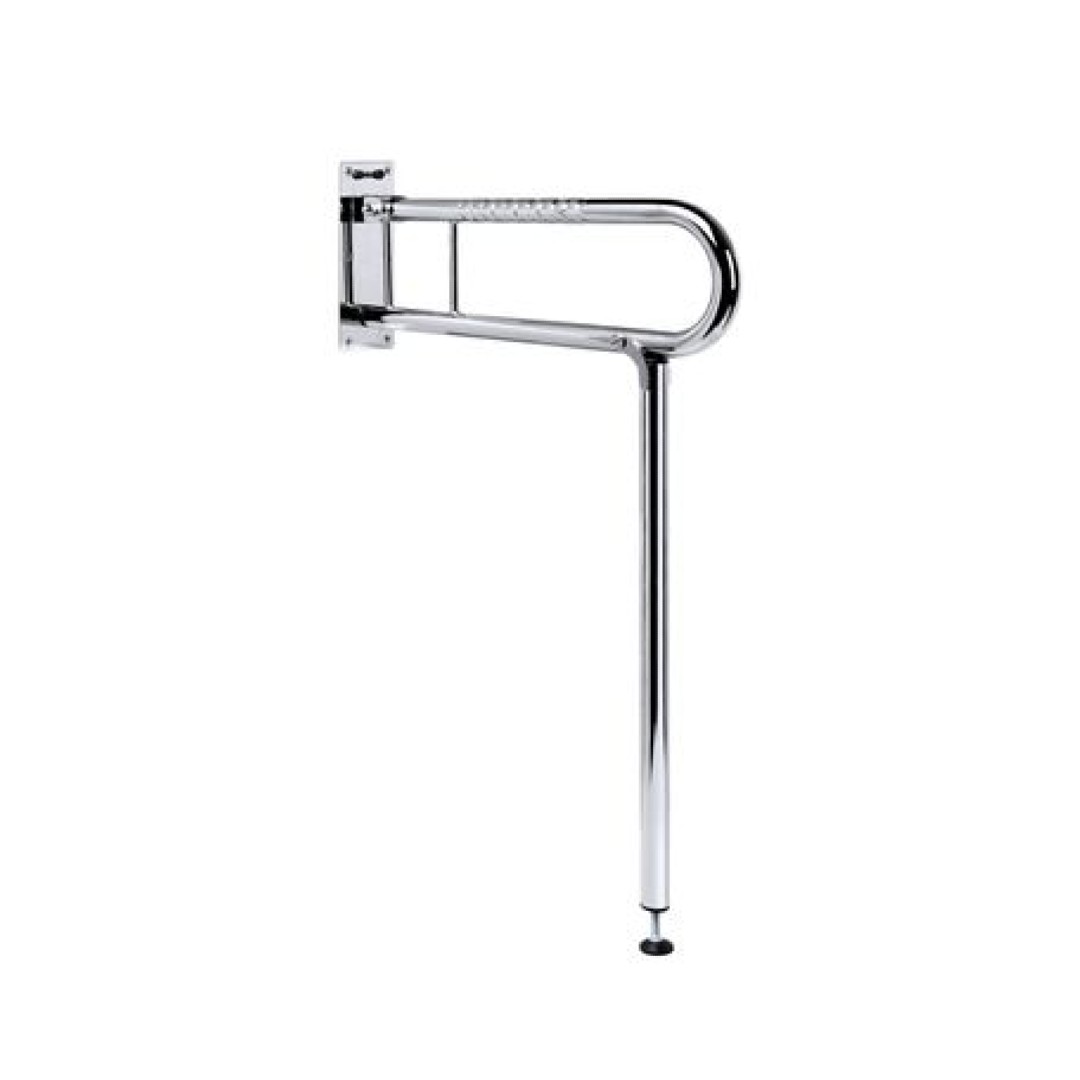 FRELU-Stützklappgriff 60cm inkl. Bodenstütze max. Belastung: 150 kg Grundplatte 275 x 100mm mit 6 Bohrungen für Greifhöhe 850 mm mit verstellbarem Fuß mit Fallsicherung und Fliesenschutzanschlag Fingergriff, poliert, offene Montage, rechts oder links verwendbar HMV-Nr. 04.40.05.1213 Der FRELU Stützklappgriff (Schwenkstützgriff) mit abklappbarer Bodenstütze sorgt für Sicherheit im Badezimmer und lässt sich, je nach Bedarf praktisch ein- und ausklappen Polierter Stützklappgriff / Schwenkstützgriff aus rostfreiem Edelstahl mit Fingergriff-Prägung Stützklappgriff 60cm mit Bodenstütze (850mm Höhe) mit Fallsicherung, Fliesenschutzanschlag und Grundplatte Rohrdurchmesser: ca. 32 mm Max. Belastung: 150 kg für Greifhöhe nach DIN 850 mm Standardausführung: Fingergriff, poliert, offene Montage, rechts/links Material: Edelstahl 1.4301 / AISI 304 / V2A Befestigungsmaterial enthalten (Edelstahlschrauben mit Kunststoffdübeln – geeignet für Beton, Naturstein, Vollziegel, Kalksandvollstein) HMV-Nr. 04.40.05.1213