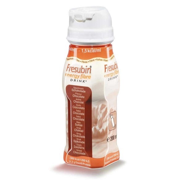 Fresubin&reg, energy fibre DRINK * ballaststoffreiche Trinknahrung mit hoher Energiedichte (300 kcal pro Trinkflasche) f&uuml,r Patienten mit o normaler Verdauungsleistung o normaler Stoffwechsellage * pr&auml,biotische und bifidogene Ballaststoffe: o regulieren, ern&auml,hren und sch&uuml,tzen den Darm o f&ouml,rdern eine gesunde Darmflora o wirken Durchfall und Verstopfung entgegen * ausgewogenes Fetts&auml,uremuster f&uuml,r Herz-Kreislauf, Gef&auml,&szlig,e und Immunsystem * bedarfsdeckende Versorgung mit Vitaminen und Spurenelementen ab 3 EasyDrinks * 6 wohlschmeckende Geschmacksrichtungen Tipp: Fresubin&reg, energy fibre DRINK schmeckt leicht gek&uuml,hlt am bestenIndikationen * fehlende oder eingeschr&auml,nkte F&auml,higkeit zur ausreichenden normalen Ern&auml,hrung * Mangelern&auml,hrung * Erh&ouml,hter Energie- und N&auml,hrstoffbedarf * Konsumierende Erkrankungen * Appetitlosigkeit * Rekonvaleszenz Kontraindikationen * grunds&auml,tzliche Kontraindikation der enteralen Ern&auml,hrung, wie D&uuml,nndarmatonie, Ileus. * Schwere organspezifische St&ouml,rungen, wie Leberinsuffizienz, Niereninsuffizienz, akute Pankreatitis in Abh&auml,ngigkeit vom Status. * Stoffwechselst&ouml,rungen der in Fresubin&reg, energy fibre DRINK enthaltenen N&auml,hrstoffe. Dosierung * Mittlere Tagesdosis zur ausschlie&szlig,lichen Ern&auml,hrung: 5 bis 7 TrinkpackungenLagerungRaumtemperatur. Ge&ouml,ffnete Beh&auml,ltnisse im K&uuml,hlschrank bis zu 24 Stunden haltbar.