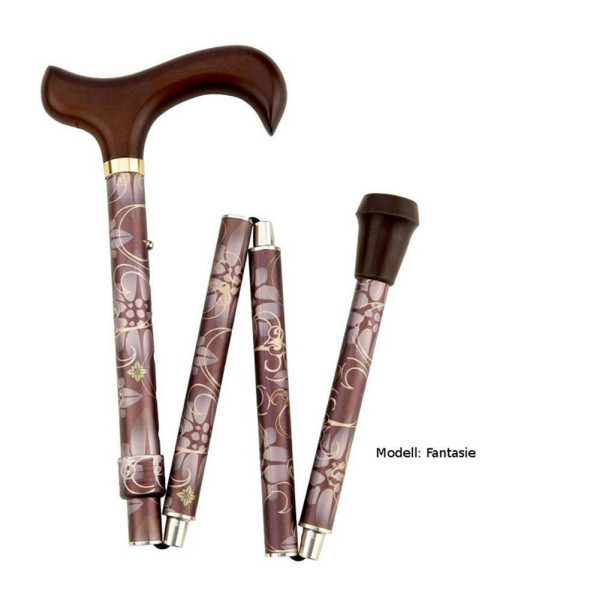 Die Deluxe-Schlank-Faltstöcke, für die elegante Frau, bestechen durch Ihre edle Optik, hohe Stabilität und die leichte Handhabung. Sie werden nicht wie normale Faltstöcke über die Rohrenden zusammengesteckt, sondern nahezu unsichtbar über spezielle Verbindungsteile verbunden. 4 teiliger Faltstock 2 verschiedene Variationen erhältlich Derbygriff aus Hartholz Stock aus Aluminium  Maße: verstellbar 76 – 86 cm Durchmesser 19 16 mm Gewicht ca. 290 g geeignet für Personen bis ca 100 kg Modelle: “Fantasie” – Ornament-Dekor, beige silber, Satin-Finish “Spitzenklasse” – silber mit Dekor aus echter Spitze Lieferumfang: 1 Deluxe-Schlank-Faltstock im gewählten Modell Gummipuffer