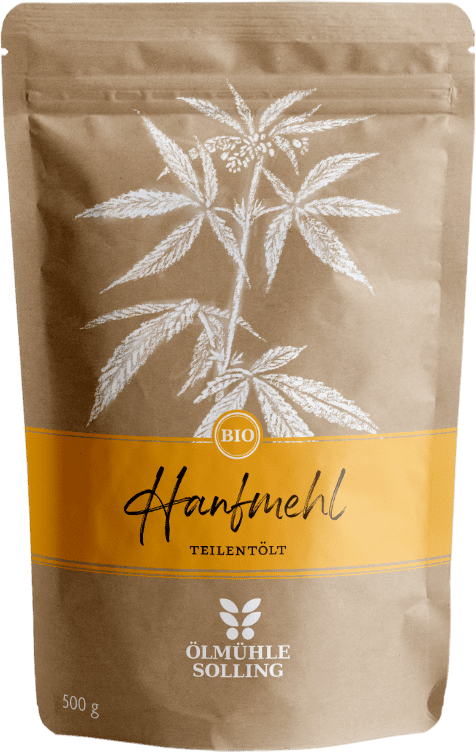 Für unser Hanfmehl wird Speisehanfsaat entölt und vermahlen. Es enthält 10 g Hanföl pro 100 g, pflanzliches Eiweiß und Ballaststoffe. Vegan und laktosefrei.