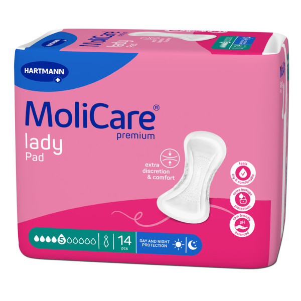 Die Hartmann MoliCare Premium Lady Pads 5 Tropfen Inkontinenzeinlagen eignen sich für mittelschwere Blasenschwäche.Noch sicherer, diskreter und schneller als das Vorgängermodell:Verbesserter Auslaufschutz und KomfortElastische Bündchen für optimalen TragekomfortVertiefte Seitenlinien für eine verbesserte KörperanpassungSpeziell an die weibliche Anatomie angepasstDiskretes Tragen in UnterwäscheWeiches Material mit atmungsaktiver textiler RückseiteHautfreundlicher pH-Wert von 5,5 mit antibakterieller Wirkung3-lagiger Saugkörper leitet Flüssigkeit rasch in das Innere des Saugkerns und speichert sie dort sicherGeruchsbindende Bestandteile schließen Gerüche sicher einSaugstärke:5 10 TropfenLieferumfang:1×14 Stück Hartmann MoliCare Premium Lady Pads 5 Tropfen