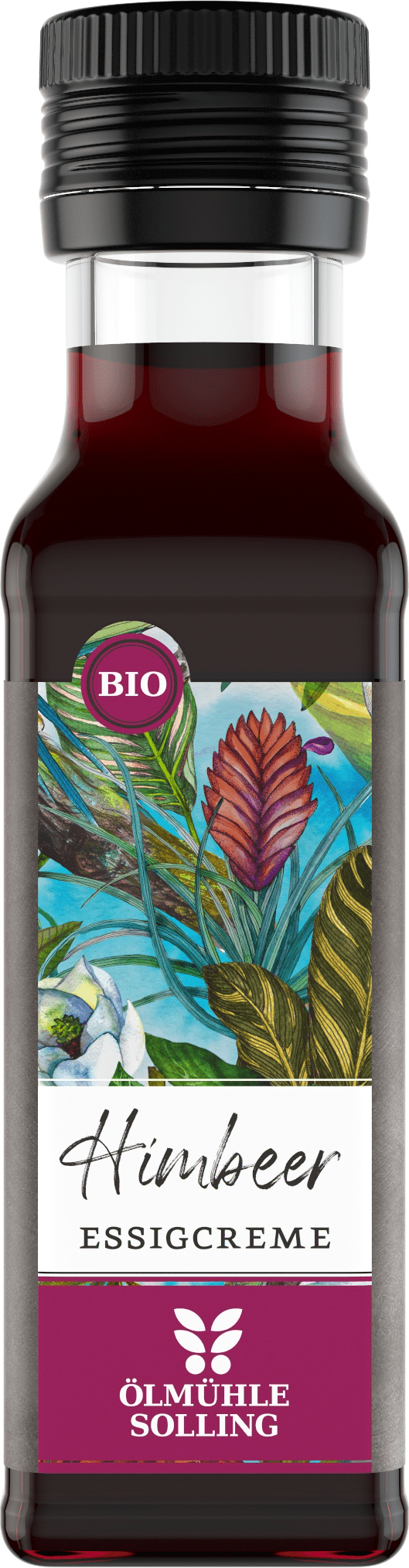 Fruchtig-süße Komposition mit traditionell hergestelltem Bio-Rotweinessig und Bio-Himbeersaft. Verfeinert Salatdressings und Saucen, Desserts, Crêpes, Eiscreme und Obstsalate.