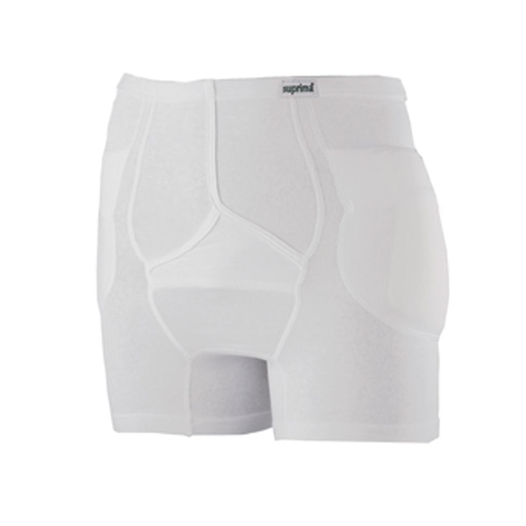 Hüftprotektor-Slip für Männer, mit Eingriff Hüftschutzhose zur Sturzprävention schützt den Oberschenkelhals hoher Tragekomfort rechts und links je eine Tasche zur Aufnahme der Protektoren vermeidet Sturzverletzungen hochelastisches Material Die Vorteile des Hüftprotektor-Slip für Männer, mit Eingriff Mit fortgeschrittenem Alter wächst das Risiko sich bei einem Sturz einen Oberschenkelhalsbruch zuzuziehen, weil der Knochenabbau (Osteoporose) eine Krankheit ist, von der größtenteils ältere Menschen befangen sind. Daher wird für Sturzgefährdeten Personen angeraten einen Slip mit Hüftprotektoren zur Reduzierung von Sturzverletzungen zu tragen. Suprima – 75 Jahre Erfahrung Der Mensch steht seit jeher bei suprima im Mittelpunkt. Das ist der Patient und der Pflegende ebenso wie der Mitarbeiter und der Kunde. Es ist der Grundsatz, mit den Produkten dem Patienten in seiner Situation eine möglichst große Entlastung zu bieten. Daraus ergibt sich meist ebenso eine Entlastung für den Pflegenden. Bitte lesen Sie vor Gebrauch dieses Hüftprotektor-Slip für Männer, mit Eingriff aufmerksam die Bedienungsanleitung und halten Sie sich an die Anweisungen des Herstellers. Änderungen vorbehalten. Abbildungen können vom Original abweichen.
