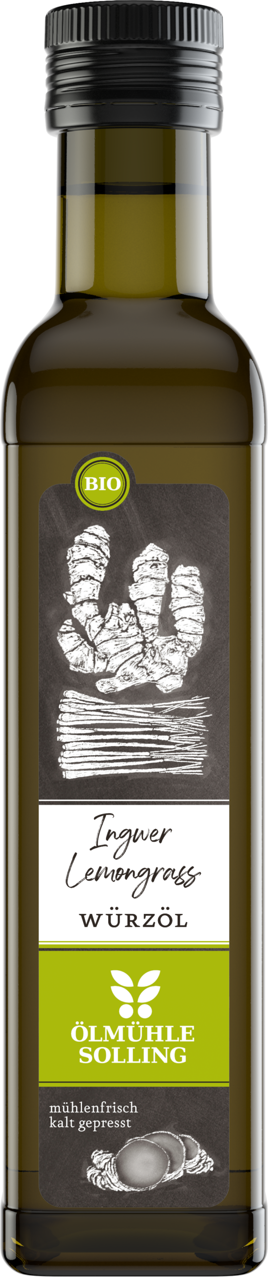 Mühlenfrisches Rapsöl verbindet sich bei diesem Würzöl mit scharfem Ingwer und erfrischendem Lemongrass und wird so zu einem vollmundigen Geschmackserlebnis mit asiatischer Note.