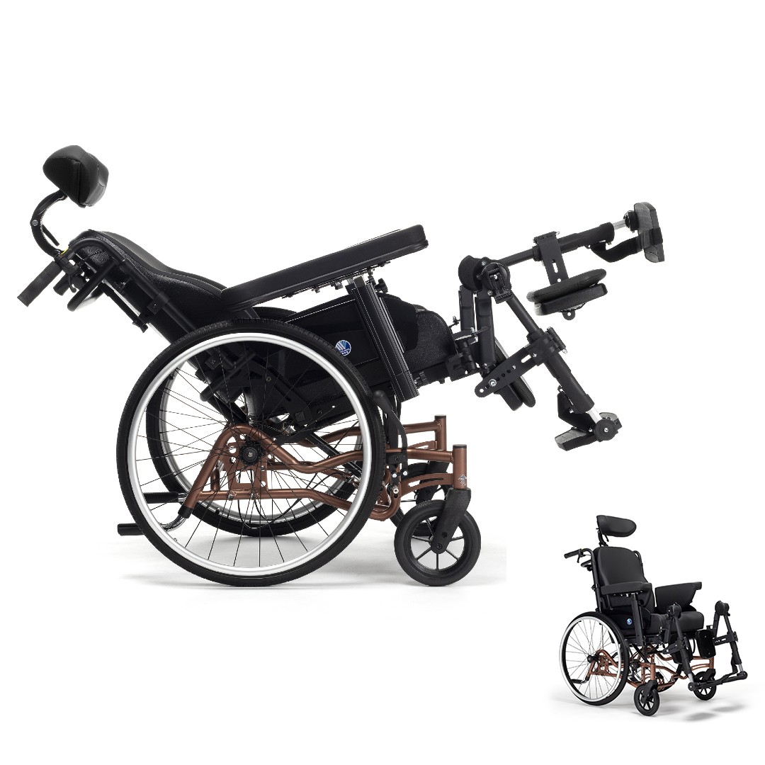 Vermeiren INOVYS II EVO TB – AKTIONSARTIKEL – Multifunktionsrollstuhl für die Pflege zu Hause Schiebegriffe, einfach werkzeuglos in der Höhe auf den Nutzer einstellbar abnehmbare, in Höhe und Tiefe verstellbare Armlehnen einstellbare Sitztiefe zur Anpassung an Rollstuhlfahrer hochgradig verstellbare Beinstützen inkl. neigbarer Fußplatte einstellbare Wadenstütze Der Inovys II Evo Multifunktions-Rollstuhl setzt neue Maßstäbe in puncto Komfort und Individualität. Als neuestes Mitglied unserer bewährten Inovys-Produktfamilie zeichnet sich der Inovys II Evo durch seine ausgezeichneten Eigenschaften zur Vermeidung von Druckgeschwüren (Anti-Dekubitus) aus. Mit einem intelligenten, auf die persönlichen Bedürfnisse zugeschnittenen Design, vereint dieser Rollstuhl das Beste aus unserer langjährigen Erfahrung: Vielseitigkeit, umfangreiche Anpassungsoptionen und einen hohen Komfort, ergänzt durch ein modernes, ansprechendes Äußeres. Die Notwendigkeit, den Rollstuhl im Laufe des Tages, bei verändernder Nutzung oder sich entwickelnden Bedürfnissen des Nutzers anzupassen, wird durch unser innovatives, werkzeugloses Anpassungssystem mühelos erfüllt. Dieses System ist so konzipiert, dass Anpassungen schnell und ohne großen Aufwand, zur Zufriedenheit von Nutzern und Pflegepersonal, vorgenommen werden können. Entdecken Sie den Inovys II Evo für ein optimales Rollstuhlerlebnis, das keine Wünsche offen lässt. HMV 18.50.02.7048 // P-HMV: 50.45.07.2024 //