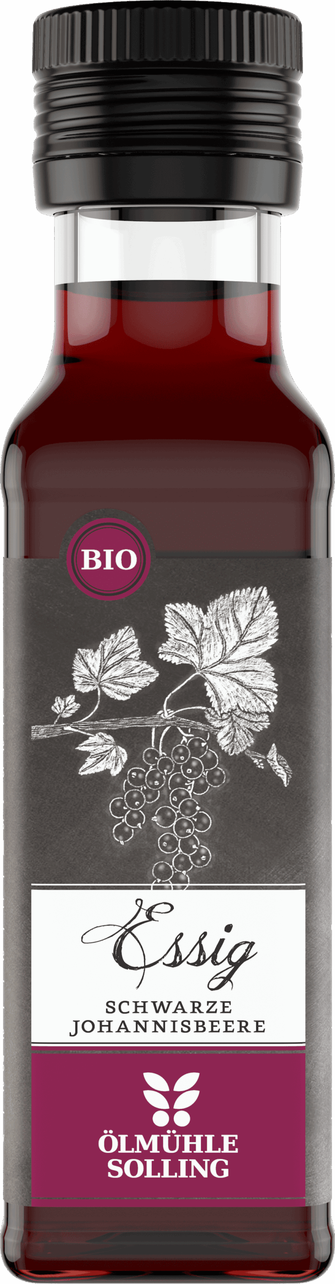 Dieser hochwertige, säuerliche Johannisbeeressig wird schonend aus dem reinen Saft schwarzer Bio-Johannisbeeren hergstellt. Der Essig hat ein vollmundiges, natürliches Cassis-Aroma.