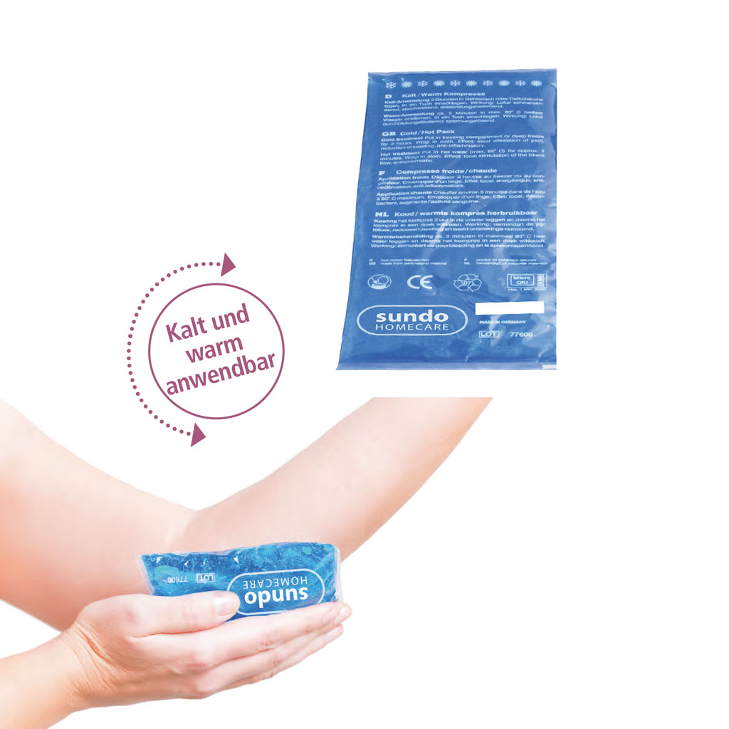 Kalt-Warm Kompresse 13 x 14 cm Kunststofffolie blaues Gel weiches Gelkissen für Kalt- oder Warm-Anwendung mikrowellengeeignet Maße: ca. 12 x 29 cm PZN 10076814 Bitte lesen Sie vor Gebrauch von diesem Produkt aufmerksam die Bedienungsanleitung und halten Sie sich an die Anweisungen des Herstellers. Änderungen vorbehalten. Abbildungen können vom Original abweichen.