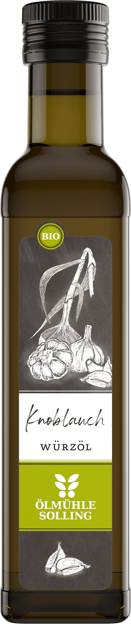 Das Knoblauch Würzöl ist eine Mischung aus schonend gewonnenem Olivenöl und frischem Knoblauch. Es schenkt kalten und warmen Speisen eine besondere Note.