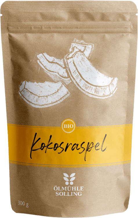 Duftende Kokosraspel aus frischen Bio-Kokosnüssen, fein geraspelt und schonend getrocknet. Zum Verfeinern von Müsli, Desserts und Backwaren.