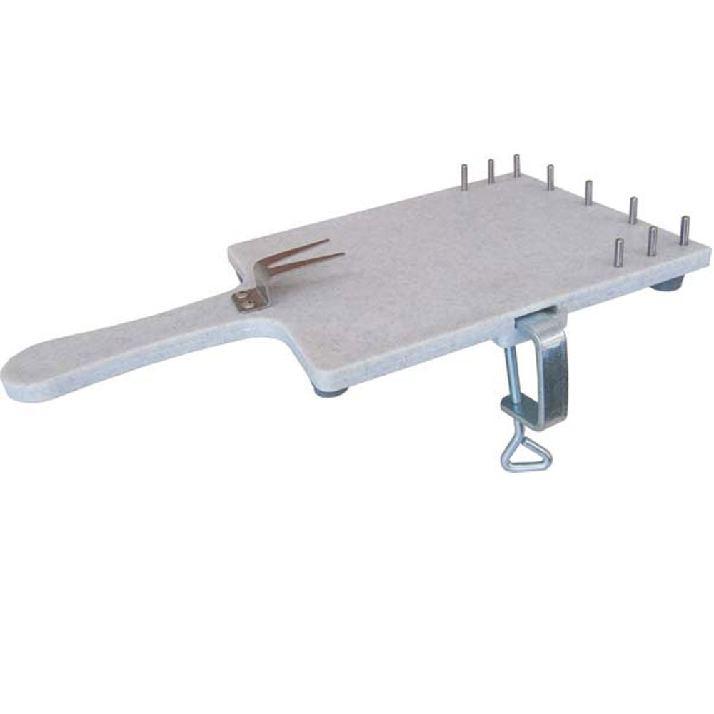 Küchenbrett aus Kunststoff und Edelstahl mit Haltegabel Rutschfest durch Unterseite mit Gummi-Noppen und Schraubzwinge Maße: 23 x 18 cm.
