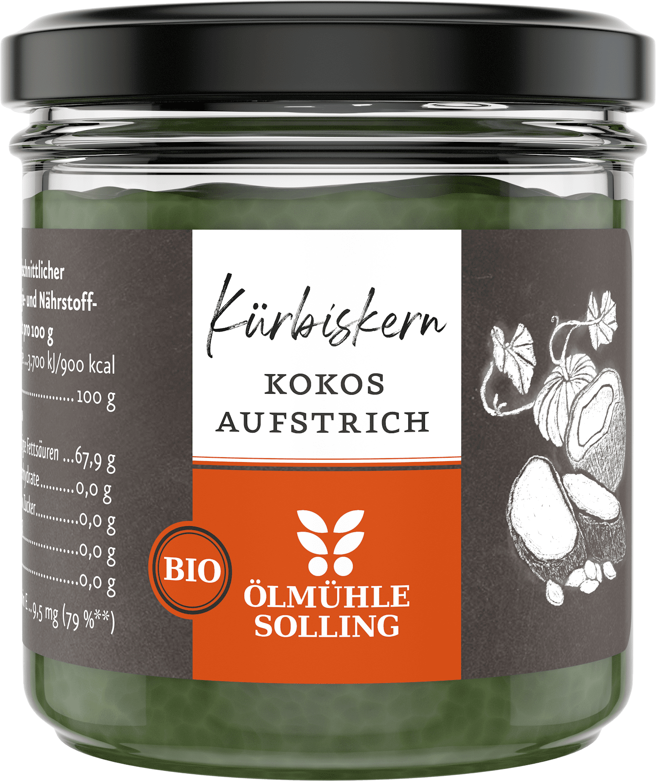 Veganer Aufstrich aus Kokosöl und steirischem, geröstetem Kürbiskernöl. Passt zu Käse und ist eine kernige Alternative zu Butter oder Margarine.