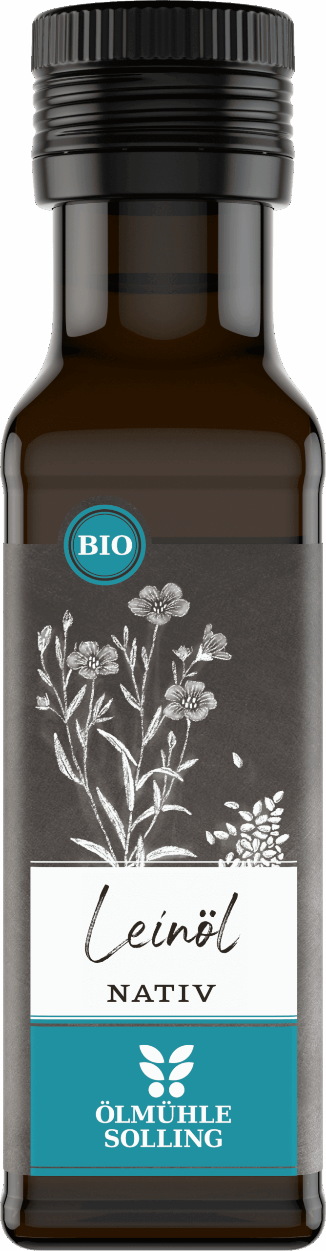 Unser wertvolles Leinöl wird täglich mühlenfrisch kaltgepresst. Es enthält 50 g Omega-3-Fett|säuren pro 100 g und ist zirka 8 Wochen haltbar. Bitte im Kühlschrank aufbewahren.