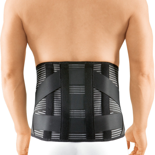Die Medi Lumbamed® stabil ist eine Rückenorthese zur Entlastung der Lendenwirbelsäule.Entlordosierung und Entlastung durch 3-Punkt-Gurtung: Starke Zuggurte unterstützen die abdominale Kompression und heben den Unterbauch anZuggurte unterstützen die abdominale KompressionSchmerzlinderung durch kompressive Wirkung des Gestricks und Massagewirkung der PelotteFarbe:schwarzRückenhöhe:ca. 26 cmGröße (Taillenumfang):70 – 82 cm = I82 – 95 cm = II95 – 108 cm = III108 – 121 cm = IV121 – 134 cm = V134 – 149 cm = VIIndikationen:Alle Indikationen, bei denen eine Teilentlastung durch Entlordosierung der LWS notwendig ist, zum Beispiel.:LumbalgieLumboischialgieLumbale SpinalkanalstenoseMuskuläre Dysbalancen im LendenbereichSpondylolistheseSpondyloseSchmerzzustände im lumbosakralen ÜbergangBandscheibenprotrusion, -prolapsMaterialzusammensetzung:Polyamid, Polyester, Elastan, Baumwolle, PolyurethanPflegehinweise:Handwäsche oder Schonwaschgang bei 30° C mit Feinwaschmittel ohne WeichspülerNicht bleichen, nicht bügeln, nicht chemisch reinigenLufttrocknenLieferumfang:1 Stück Medi Lumbamed® stabil Rückenorthese in gewählter Größe