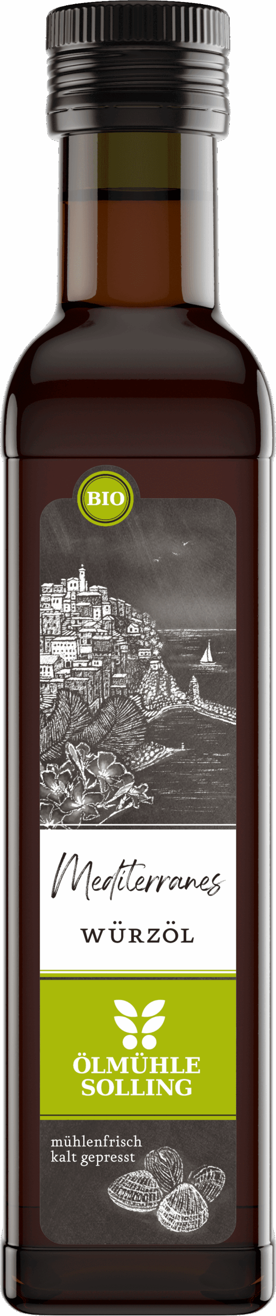 Dieses Würzöl enthält das natürliche Aroma aus Paprika, Oregano, Pfeffer, Basilikum, Koriander, Rosmarin, Thymian, Zwiebeln und Majoran kombiniert mit kaltgepresstem Rapsöl.