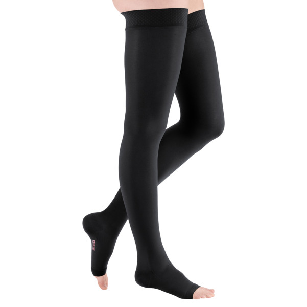 Die mediven plus Schenkelstrümpfe sind optimal für den Alltag für Sie und Ihn geeignet.Plus-Ferse mit Y-Form: leichtes Anziehen, sicherer Sitz und freies Gefühl im SpannbereichGerippte Sohlenverstärkung sichert zuverlässige HaltbarkeitHohe StrapazierfähigkeitBlickdichte OptikAntibakterielle Wirkung am ganzen Bein durch Clima FreshSehr gute HautverträglichkeitKompressionsklasse II: Kompression in mmHg: 23,0 – 32,0, Kompression in kPa: 3,10 – 4,30Normaler Abschluss, ohne HaftbandIndikationen:Nach Varizenverödung OP, sowie Schwangerschaftsvarikosis bei leichter bis schwerer ÖdemneigungEntzündliche Venenerkrankungen (oberfl ächliche Thrombophlebitis, Varikophlebitis) bei leichter bis mittlerer ÖdemneigungThromboseprophylaxe mobiler PatientenPrimäre und sekundäre Varikosis bei leichter bis schwerer ÖdemneigungCVI Stadium I – III bei leichter bis schwerer Ödemneigung bzw. CEAP-Klassifikation C1 bis C5Tiefe Venenthrombose, postthrombotisches Syndrom bei leichter bis schwerer ÖdemneigungMaterial:69% Polyamid31% ElastanPflege-Komfort:Für Waschmaschine und Trockner geeignetFarben:caramelschwarzanthrazitcashmeremarineweißbronzebeigeroseGrößen (Fesselumfang):18-20 cm = I20-22 cm = II22-24 cm = III24-26 cm = IV26-28 cm = V28-30 cm = VI30-32 cm = VIILänge normal:72 – 83 cmLieferumfang:1 Paar mediven plus CCL2 AG Schenkelstrümpfe offene Fußspitze normal in gewählter Farbe und Größe